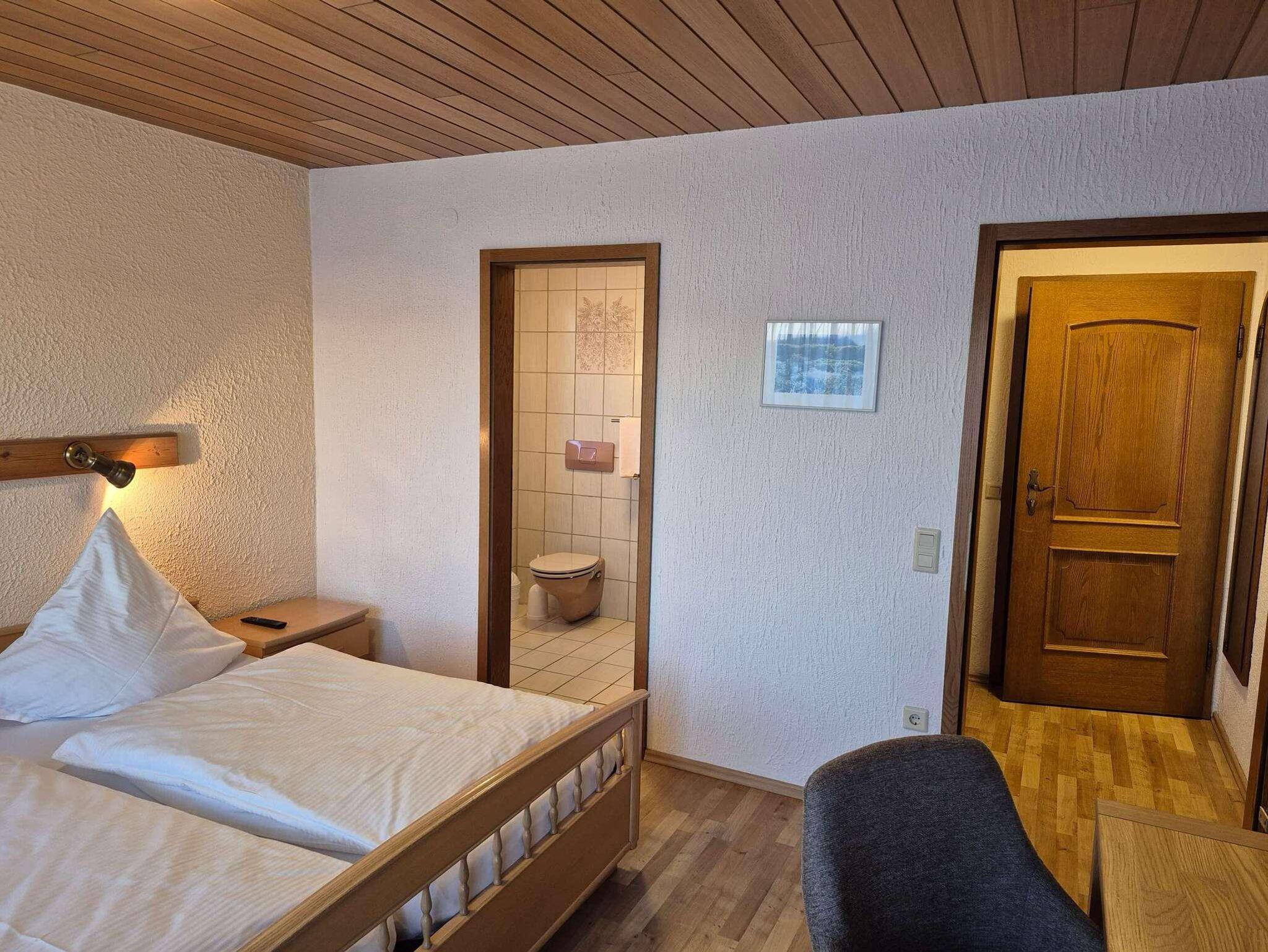 Dieses gemütliche Doppelzimmer bietet komfortablen Raum für zwei Personen und eignet sich ideal für Paare oder Freunde. Vom Balkon aus genießen Sie einen schönen Blick in den Garten und auf die umliegende Landschaft des Fichtelgebirges. Zur Ausstattung gehören ein eigenes Bad mit Dusche und WC, ein Flachbild-TV sowie kostenfreies WLAN. Das Frühstück ist inklusive und rundet den Aufenthalt angenehm ab. Bei Buchungen ab fünf Nächten profitieren Sie von einem Rabatt von 5 Euro pro Nacht.