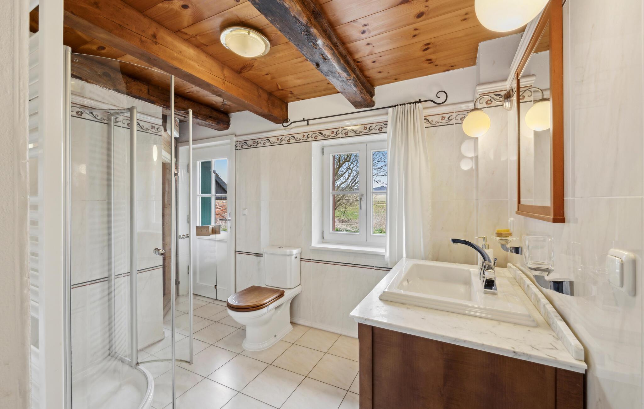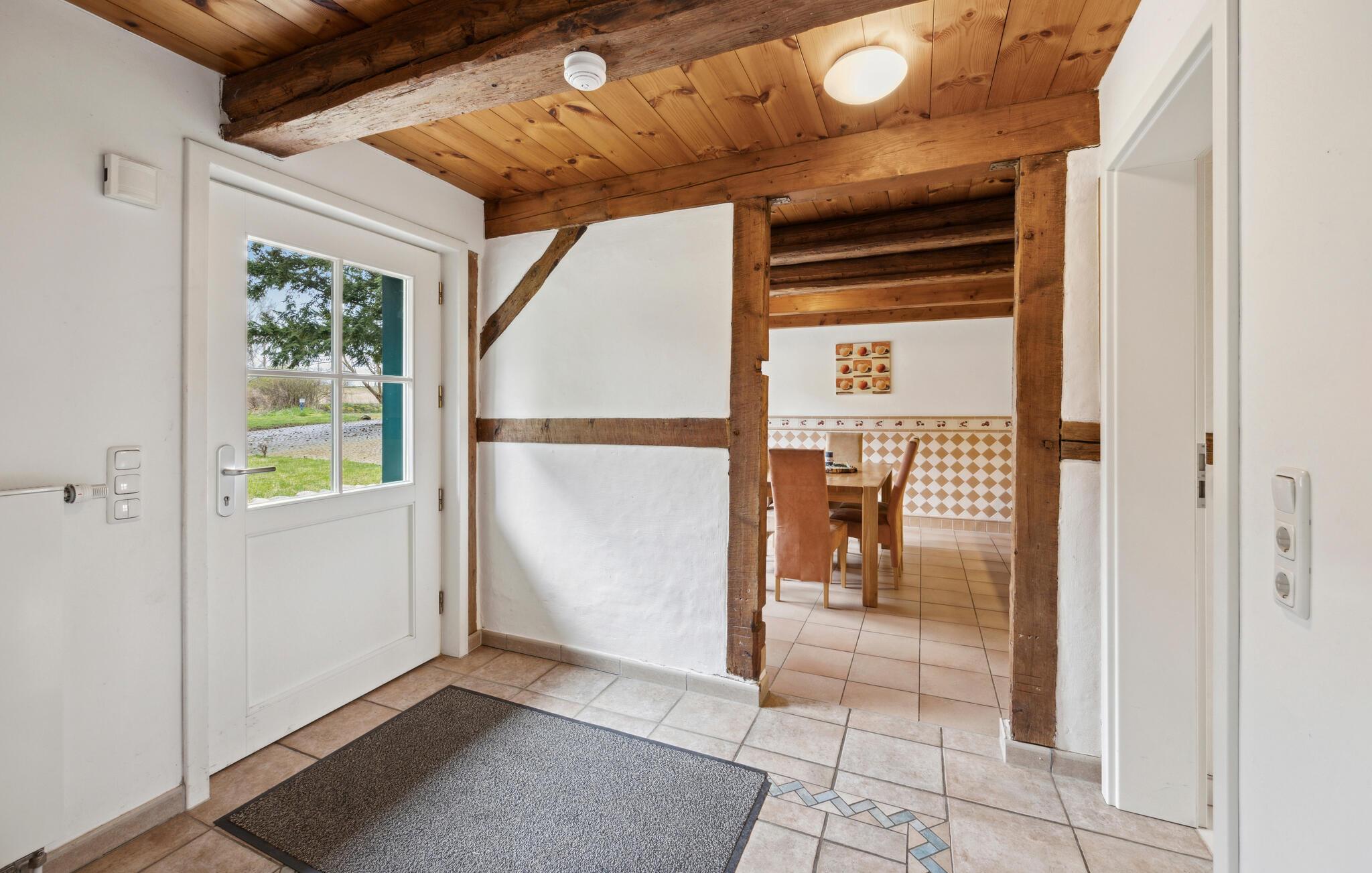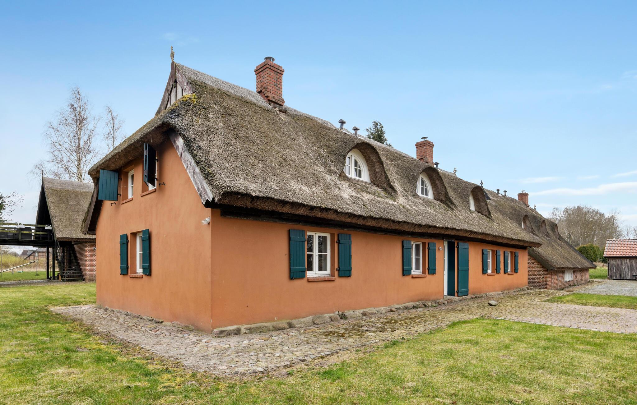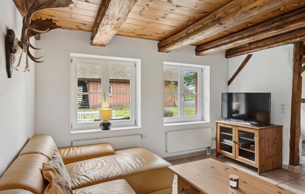 Oplev en afslappende ferie i dette stråtagshus med sauna og landlig ø-idyl. Tilbring jeres ferie midt i store marker og skove i dette traditionelle landsted med en særlig charme. Huset på øen Rügen inviterer jer til en pause i fredelige omgivelser. Glæd jer til et kærligt møbleret hjem med rustikke træbjælker, en flisebelagt pejs og en hyggelig atmosfære. Opholdsstuen med en stor sofa tilbyder plads til afslappende aftener foran tv'et eller med en bog fra bogreolen. I køkkenet med spisebord og klassiske møbler kan I tilberede og nyde regionale retter sammen. Slap af i saunaen efter lange gåture og nyd varmen. Nyd freden og roen blandt skove, marker og frugttræer. Den rummelige ejendom med en stor græsplæne er omgivet af natur, ideel til børn at lege eller til øjeblikke med ro. Udforsk området omkring Zargelitz på lange gåture eller cykelture. Besøg det nærliggende Putbus med teateret og slotsparken, eller tag til Østersøkysten for en dag på stranden. Med sit mangfoldige dyreliv er jeres feriehus en ideel destination for både jægere og naturelskere.