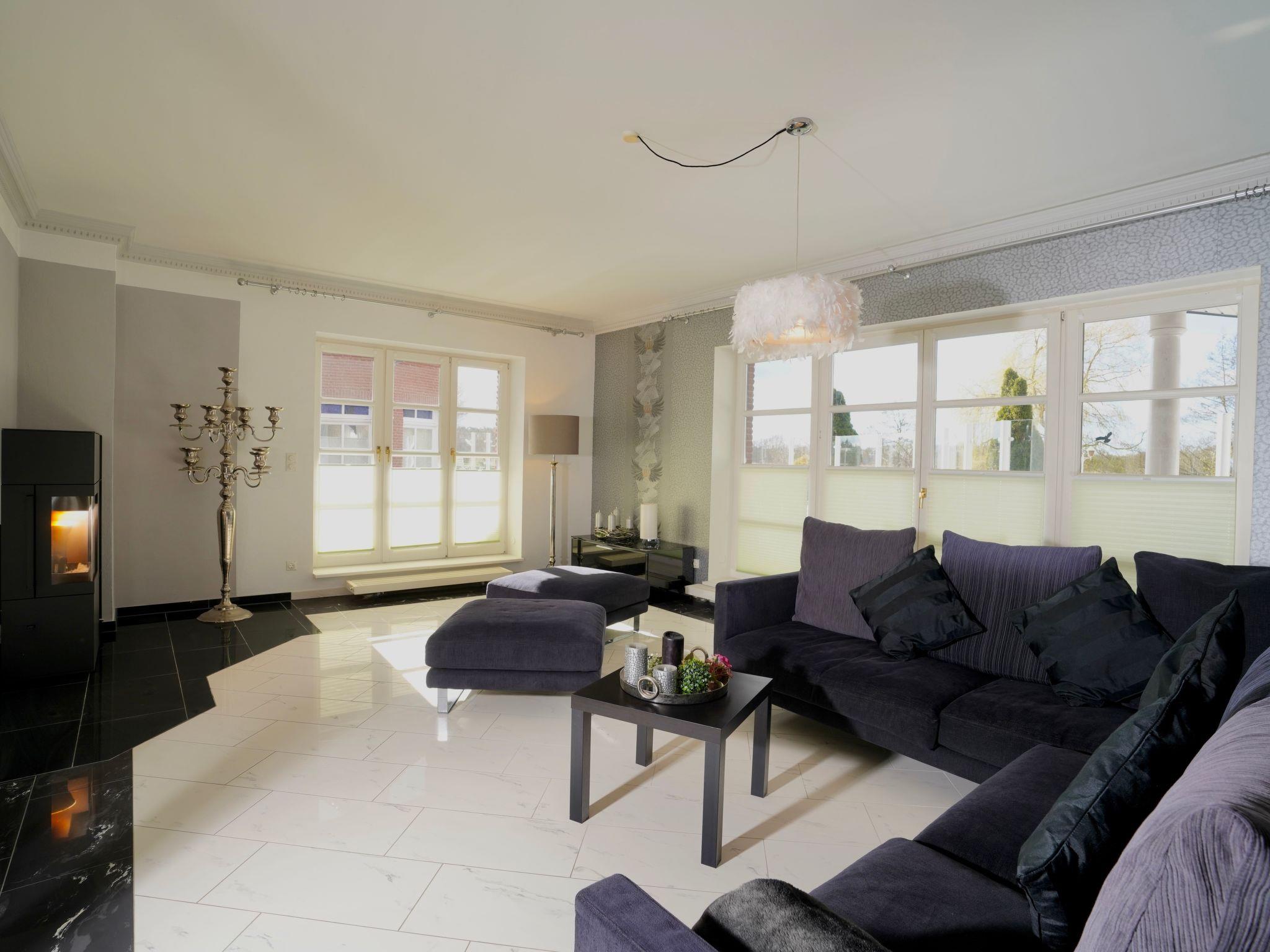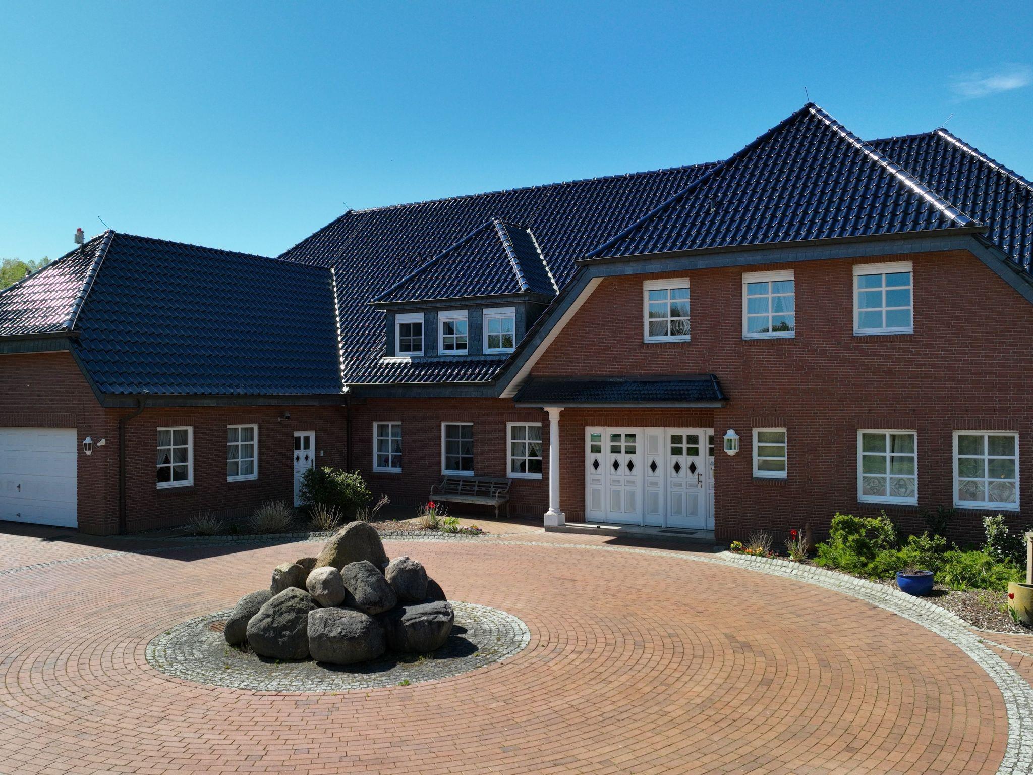 The villa has a private swimming pool, sauna and wellness area and is located in the centre of the famous Sternberg lake district in Rühn, near the town of Bützow. Many lakes, avenues, healthy nature. The 570 m² villa with 4500 m² garden is located on the Warnow. You use a tastefully furnished living room with fireplace and large flat screen TV, the dining room with large table and garden view, a fireplace room with library, a large and modern kitchen, five bedrooms including one on the ground floor (4 upstairs / two with large loggia), 4 bathrooms and a guest toilet, as well as a spacious terrace with plenty of garden furniture, of course, there is also W -Lan and Internet. There is a washing machine and tumble dryer in the utility room.