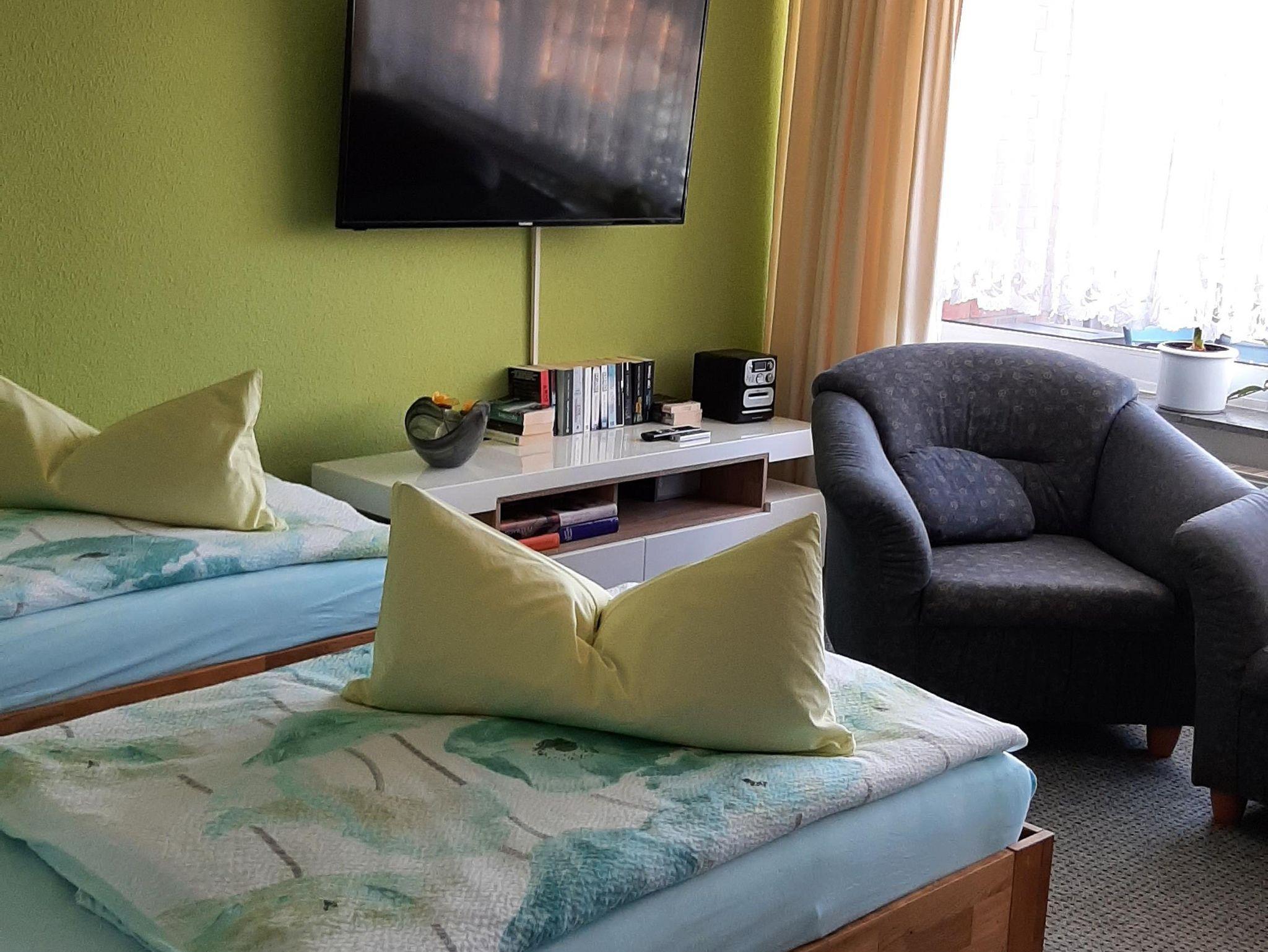 - Wohnzimmer mit Fernseher (Sat-Empf.), Schlafmöglichkeit / Aufbettung