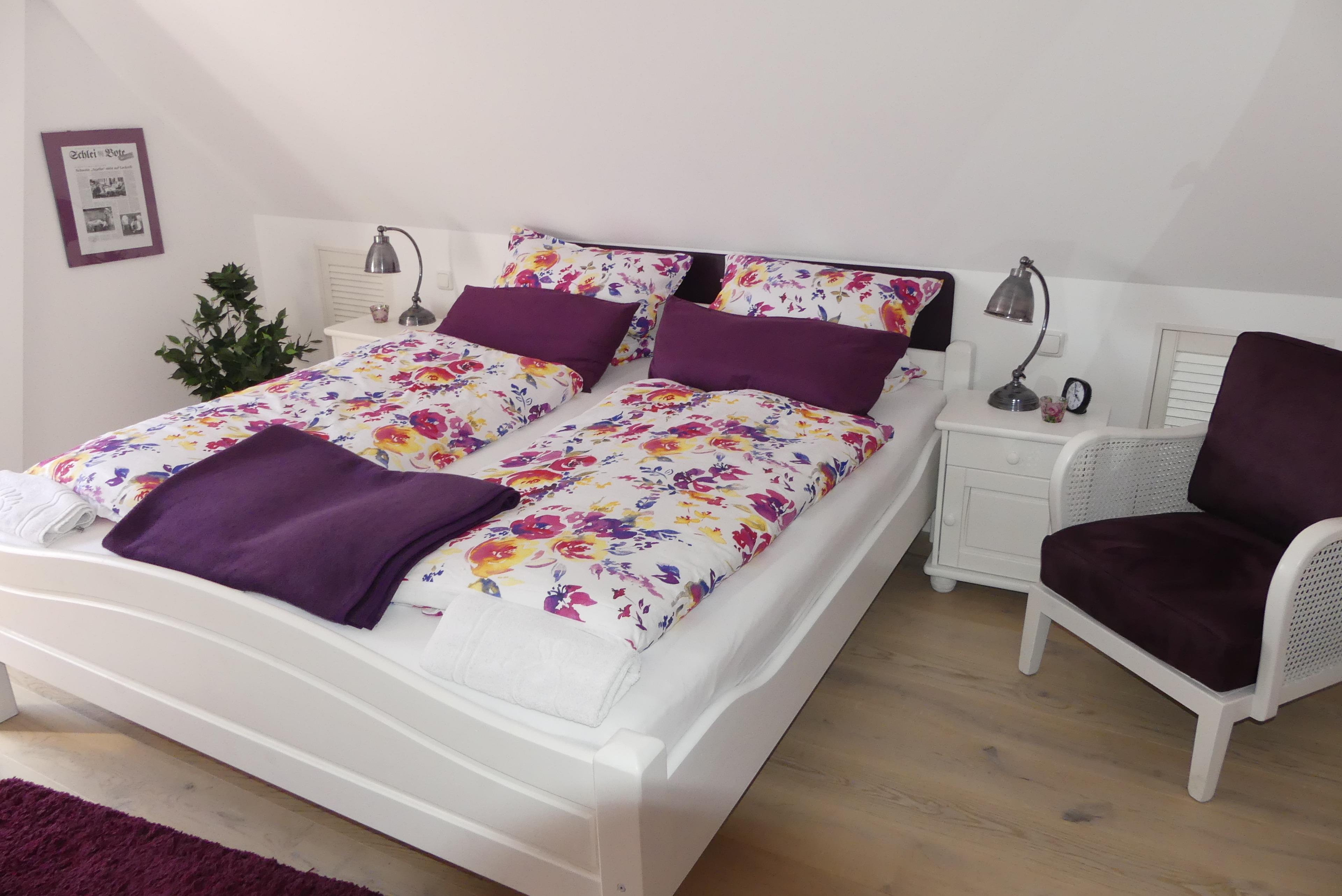 Geschmackvoll eingerichtete Ferienwohnung im Obergeschoss auf einem teilbewirtschafteten Bauernhof. Sie erreichen die Wohnung über einen eigenen Aufgang über den Balkon. Sie verfügt über zwei Schlafräume (1x Doppelbett, 1x zwei Einzelbetten), eine offene Küche mit Geschirrspüler und Mikrowelle sowie ein Badezimmer mit Dusche und WC. Der wunderschön angelegte Bauerngarten lädt zum Entspannen und Erholen ein.