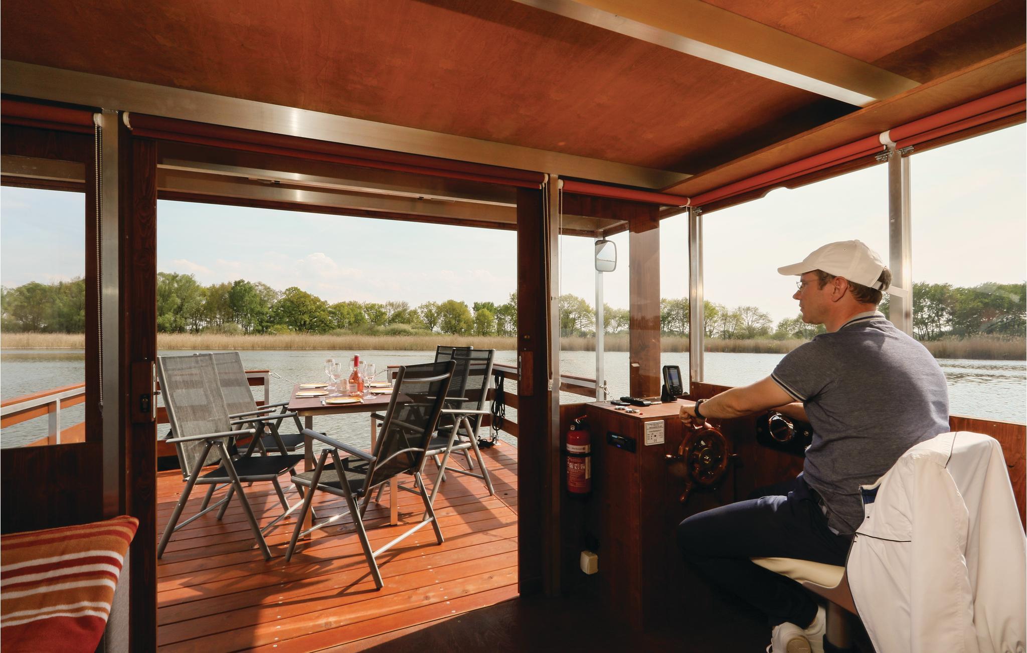 Husbåden tillader en lang række anvendelser, herunder som et liggende feriehus eller som det perfekte transportmiddel til at udforske Beetzsee med sine mange forankrings- og fortøjningsmuligheder og området. I kan også fiske, grille eller bare nyde solen om bord. Husbåden er et perfekt feriemål, især for cyklister, fordi I kan parkeres jeres cykler på terrassen, sejle til den næste destination og tage den næste spændende cykeltur der.