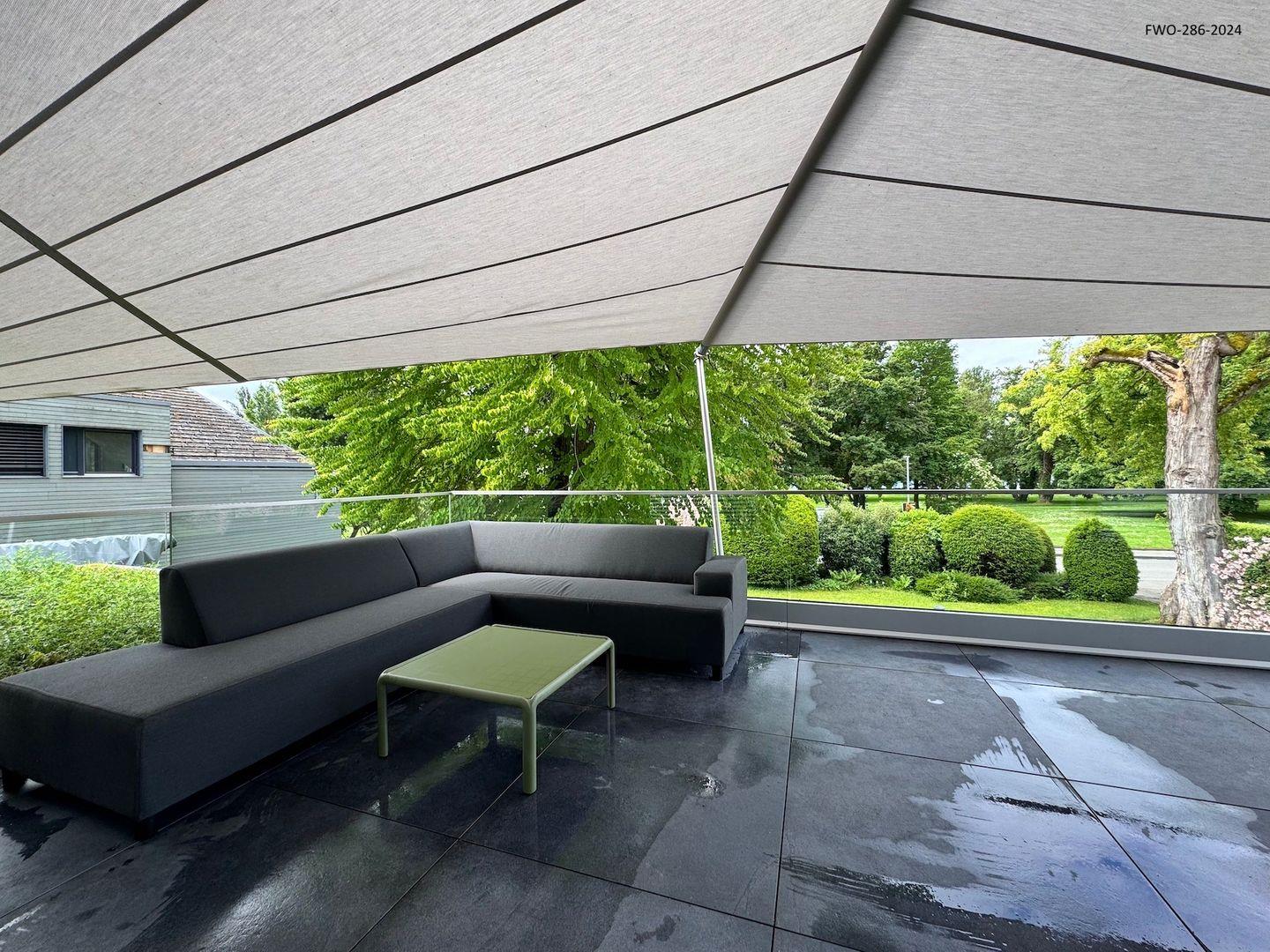 Ein Highlight dieser Ferienwohnung ist die großzügige Terrasse, die mit einem großen Sonnensegel ausgestattet ist. Dieses bietet ausreichend Schatten, sodass Sie auch an sonnigen Tagen gemütlich draußen entspannen können. Die Terrasse eignet sich perfekt für ein Frühstück im Freien oder einen entspannten Abend bei Sonnenuntergang.