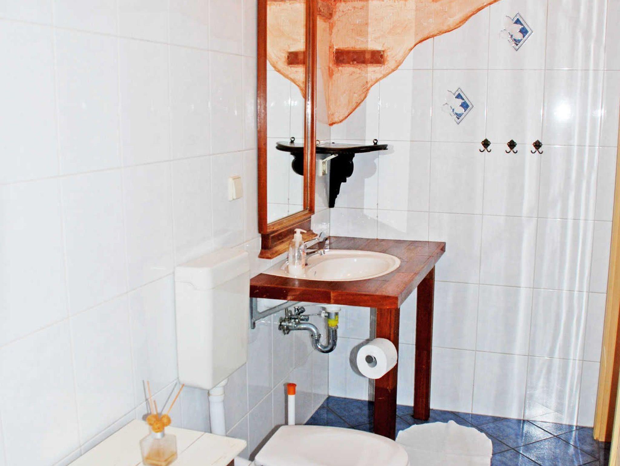 Das Bad verfügt über Dusche, WC und Waschtisch. Zu dieser Wohnung gehört auch eine Terrasse mit Gartenmöbeln. Als besonderes Extra liefern wir Ihnen auf Wunsch jeden Morgen kostenlos frische Bäckerbrötchen. Liebe Haustiere sind bei uns ebenfalls und jederzeit ohne Aufpreis in dieser Ferienwohnung willkommen.