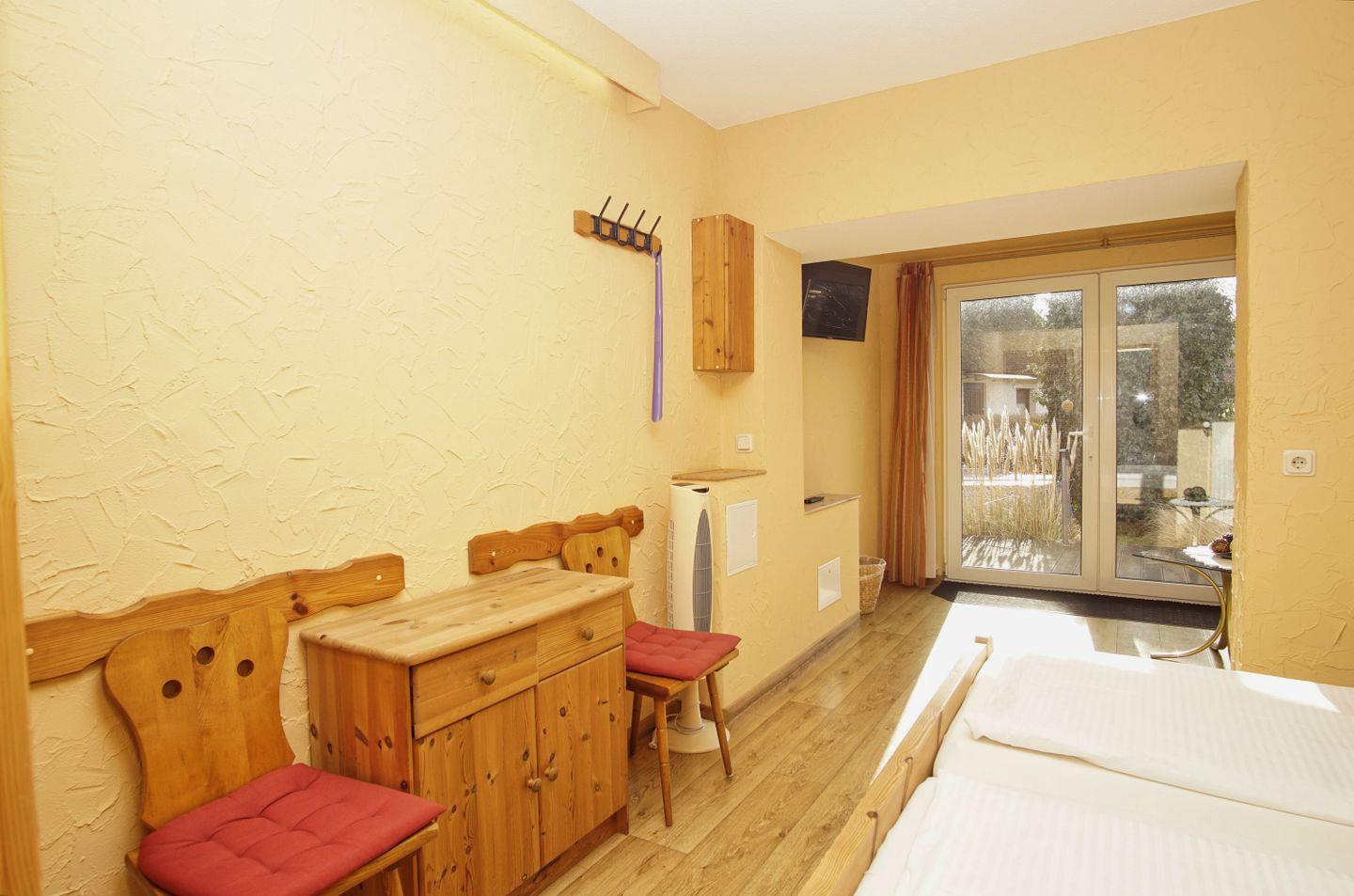 SCHLAFEN // 1 sep. Schlafzimmer mit bequemem Doppelbett, Kleiderschrank, Sitzgelegenheit und kleiner Kühlschrank ++