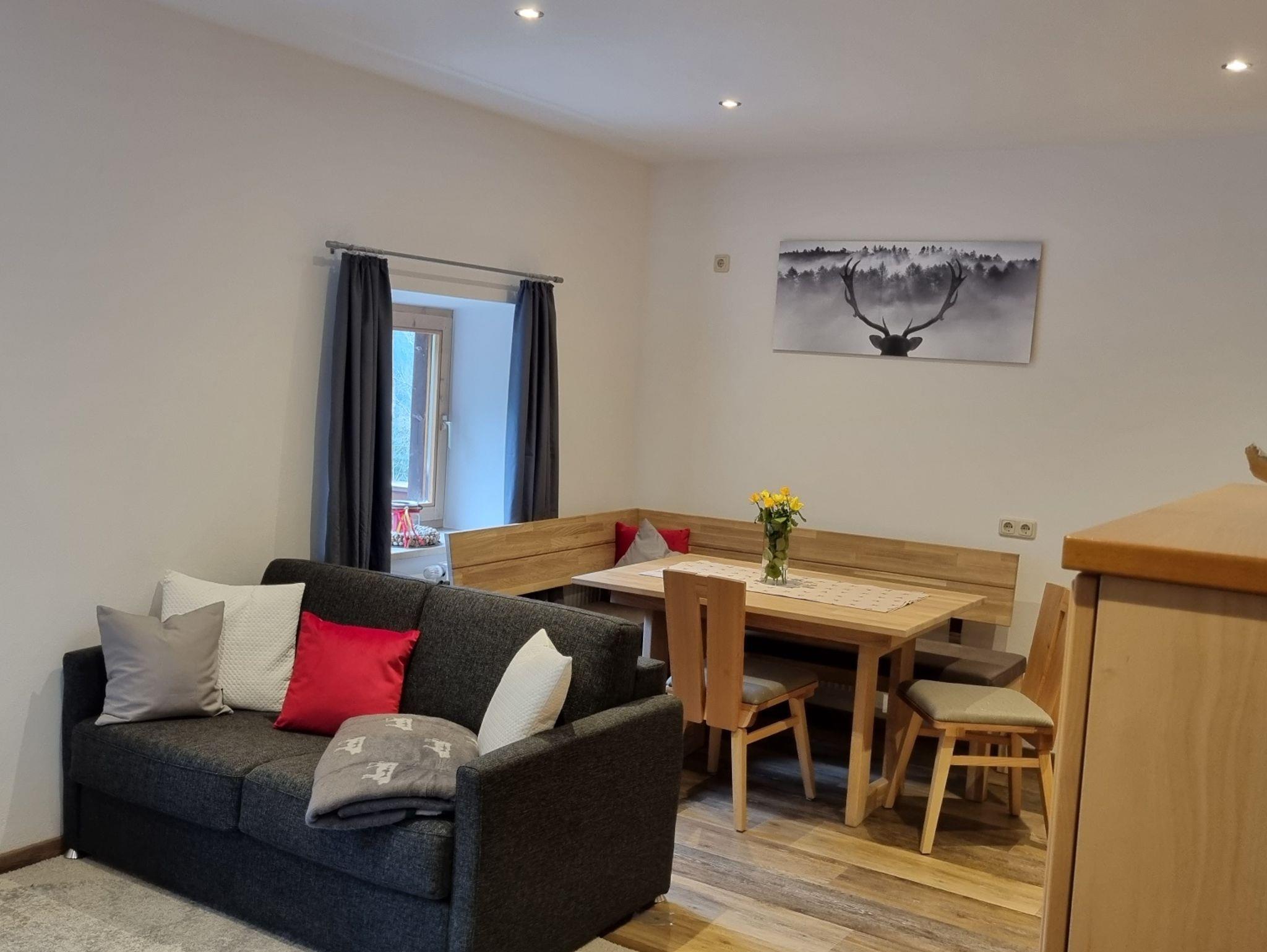 Die Ferienwohnung ist modern und komfortabel eingerichtet und bietet Platz für bis zu vier Personen. In direkter Nachbarschaft befindet sich das Wirtshaus Wachterl, in dem Sie sich mit regionalen Schmankerln und anderen Köstlichkeiten - bereitet aus hochwertigen Zutaten - zusätzlich bestens verwöhnen lassen können. Der hochwertig eingerichtete Wohnraum der Ferienwohnung ist mit einem komplett ausgestatteten Küchenbereich, einer schönen Sitzecke und einer ausziehbaren Couch ausgestattet.