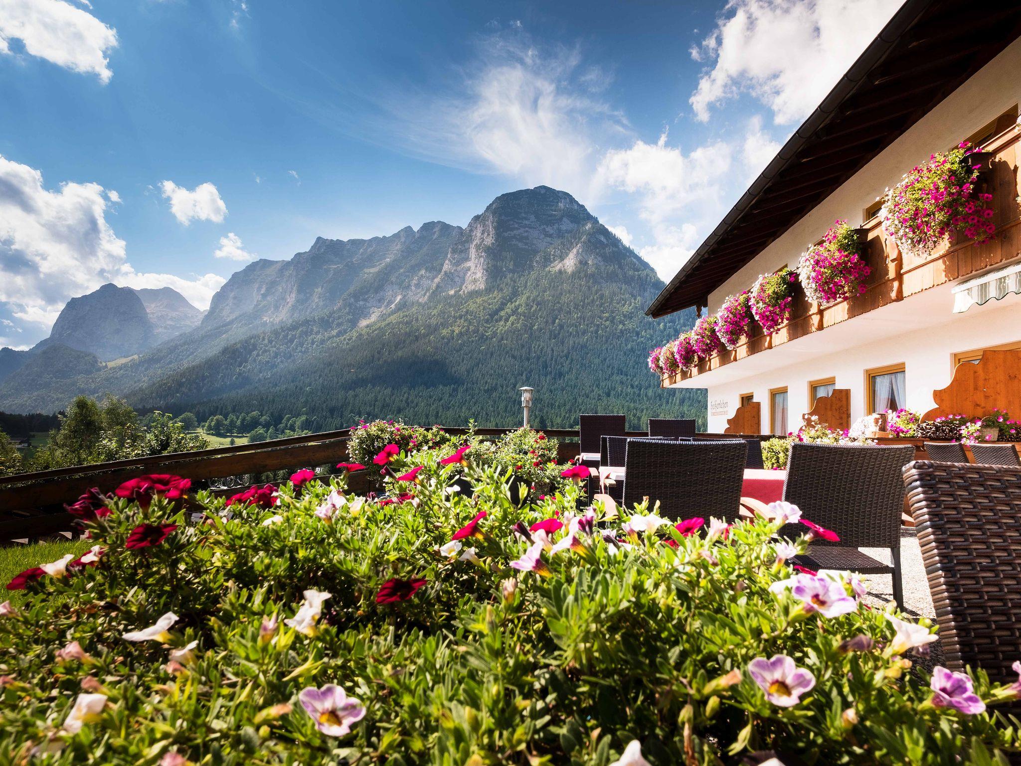 Auf 900m oberhalb des Ramsauer Tales am Fuße des Watzmanns mit einem sagenhaften und sonnigen Blick über die ganze Bergwelt bieten wir Ihnen Wohlig schlafen - Ausgiebig frühstücken - Genussvoll aktiv sein. Unsere im erfrischendem Design eingerichteten Nichtraucher- Komfortzimmer mit einem sonnigen und majestätischen Blick auf Watzmann, Hochkalter und Reiteralpe, bieten einen zeitgemäßen Standard Mit viel Liebe zum Detail, Herz und Leidenschaft begrüßen wir Hobby-Alpinisten, Wiederholungstäter und diejenigen die wir noch begeistern dürfen. Das Frühstück ist unsere großen Leidenschaft und wird jeden Tag individuell mit regionalen Produkten aus der Region mit viel Liebe zubereitet. Sie können dies auf unserer sonnigen Panoramaterrasse oder in unserem urigen Frühstücksraum genießen. Als besonderen Service für unsere Gäste steht ihnen unser Rastplatz mit kostenloser Tee/Kaffeebar, Gästekühlschränken, Bibliothek, Getränkeangebot zur Verfügung. WLAN im Haus kostenlos. Bestpreisgarantie bei Direktbuchung über Homepage oder per Email unter , es lohnt sich!! Oder einfach anrufen und sofort buchen. Wir freuen uns auf Sie!