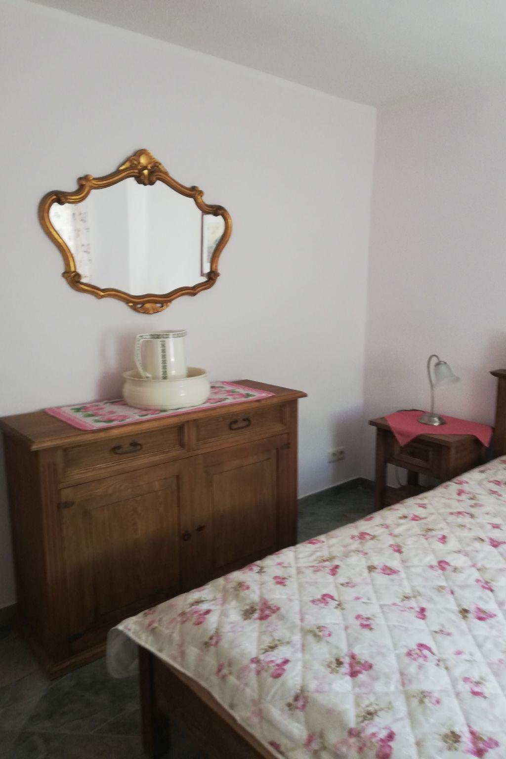 The country style house has two separate bedrooms, each with a double bed, a large kitchen and living room and invites you to relax. The stylish and comfortably furnished holiday house with garden and terrace provides ample space for a relaxing and restorative stay. The whole living space of around 70m² is at ground level. There are only two steps at the entrance door. The kitchen is fully equipped with a stove, oven, fridge with freezer compartment, sink, kettle as well as coffee machine and with 20 m² it is very spacious. There is also a washing machine and a dishwasher as well as a little sitting space for two people. The bathroom is fitted with a washbasin, toilet and shower. Towels are included. The bedrooms are furnished with double beds (160 and 180 cm width). There is plenty of space for a child’s bed. The living room has satellite TV and a sofa with seating arrangements. All the rooms have radiators. In one room there is also a nice, old German tiled stove which you can use in cooler months enjoying a cosy atmosphere.