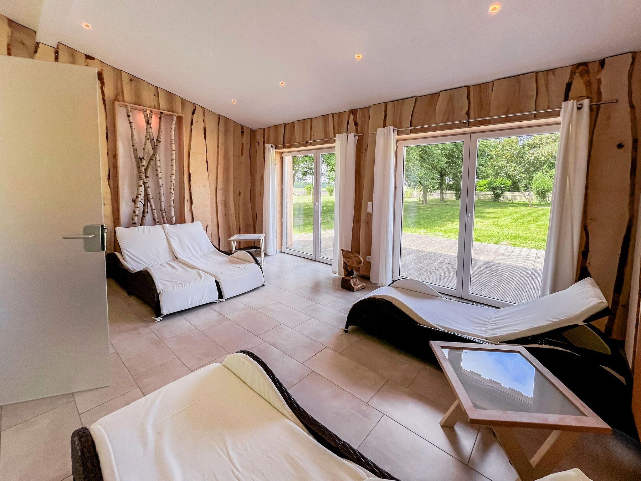 Die großzügige, parkähnliche Gartenanlage lädt mit gemütlichen Sitzmöglichkeiten und Sonnenliegen zum Entspannen ein. Ein absolutes Highlight ist das Saunahaus mit Ruhebereich und Sonnenterrasse, das Ende 2022 fertiggestellt wurde ein Rückzugsort für Wellnessliebhaber (Nutzung gegen Gebühr).