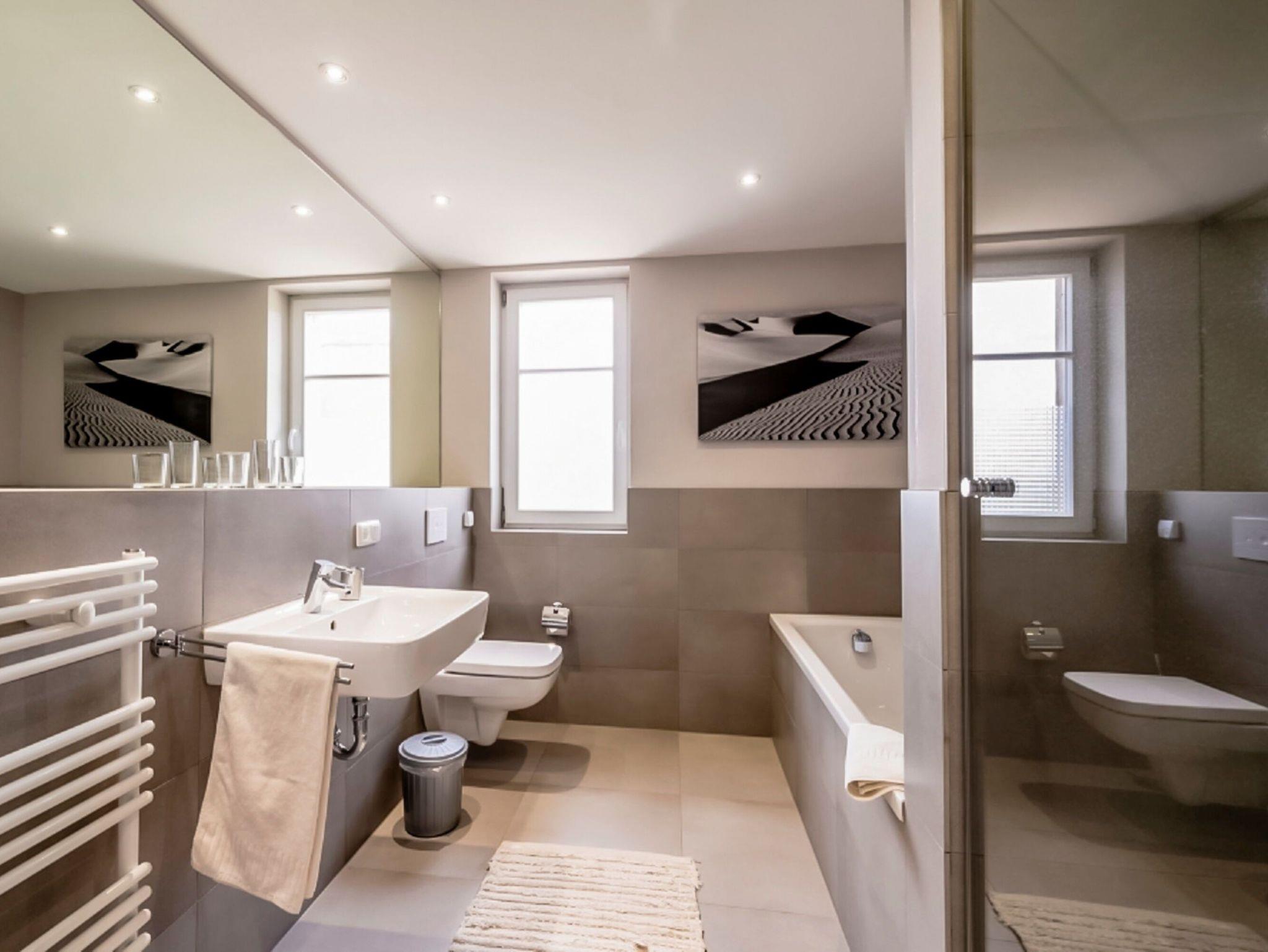 • Badezimmer: Hochwertig ausgestattet mit Badewanne und Dusche