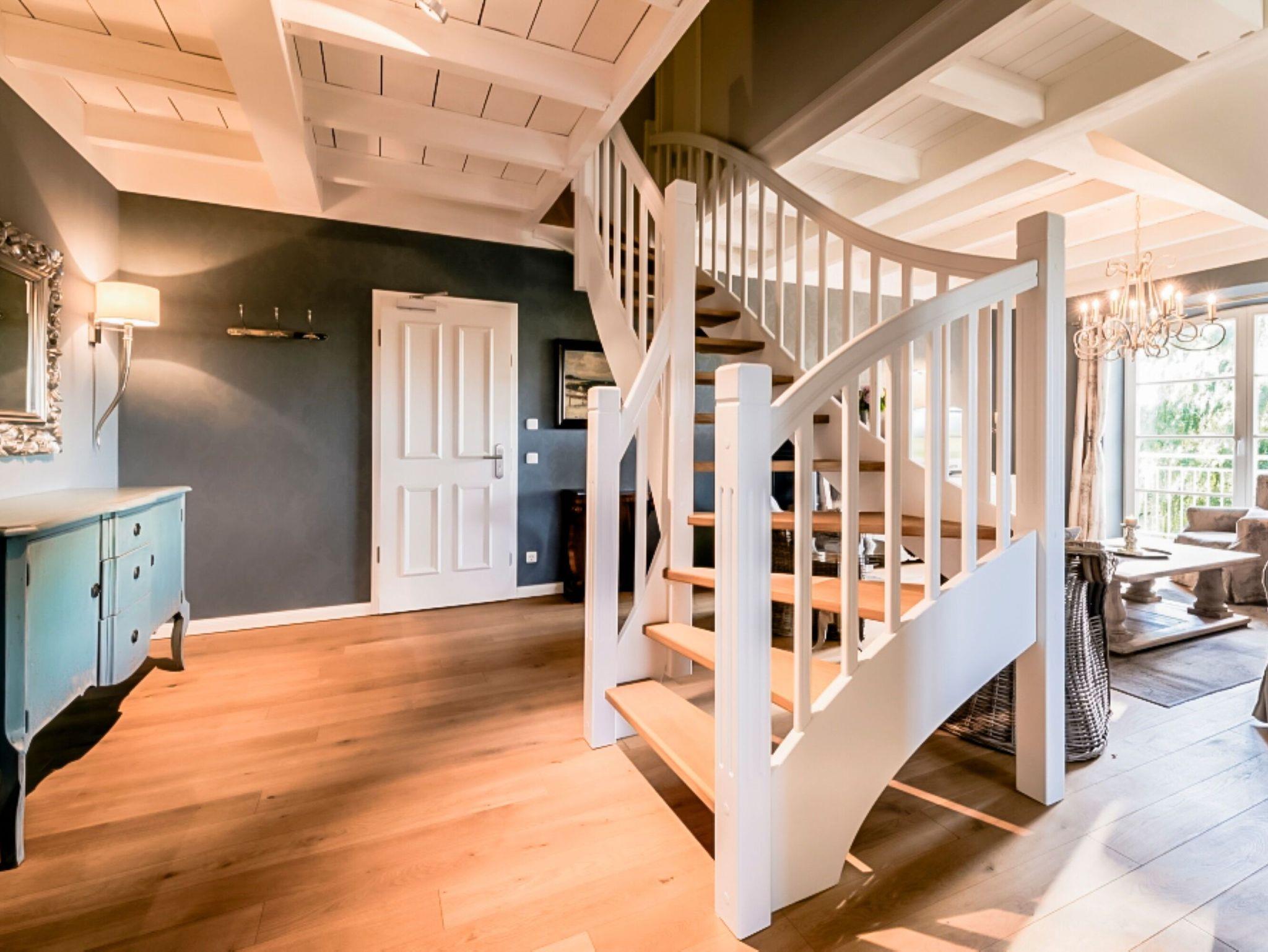• Schlafzimmer [&] Bäder: Zwei Schlafzimmer mit komfortablen Boxspringbetten sowie ein luxuriöses Bad mit Badewanne und Dusche und ein zusätzliches Gäste-WC befinden sich auf der ersten Etage.