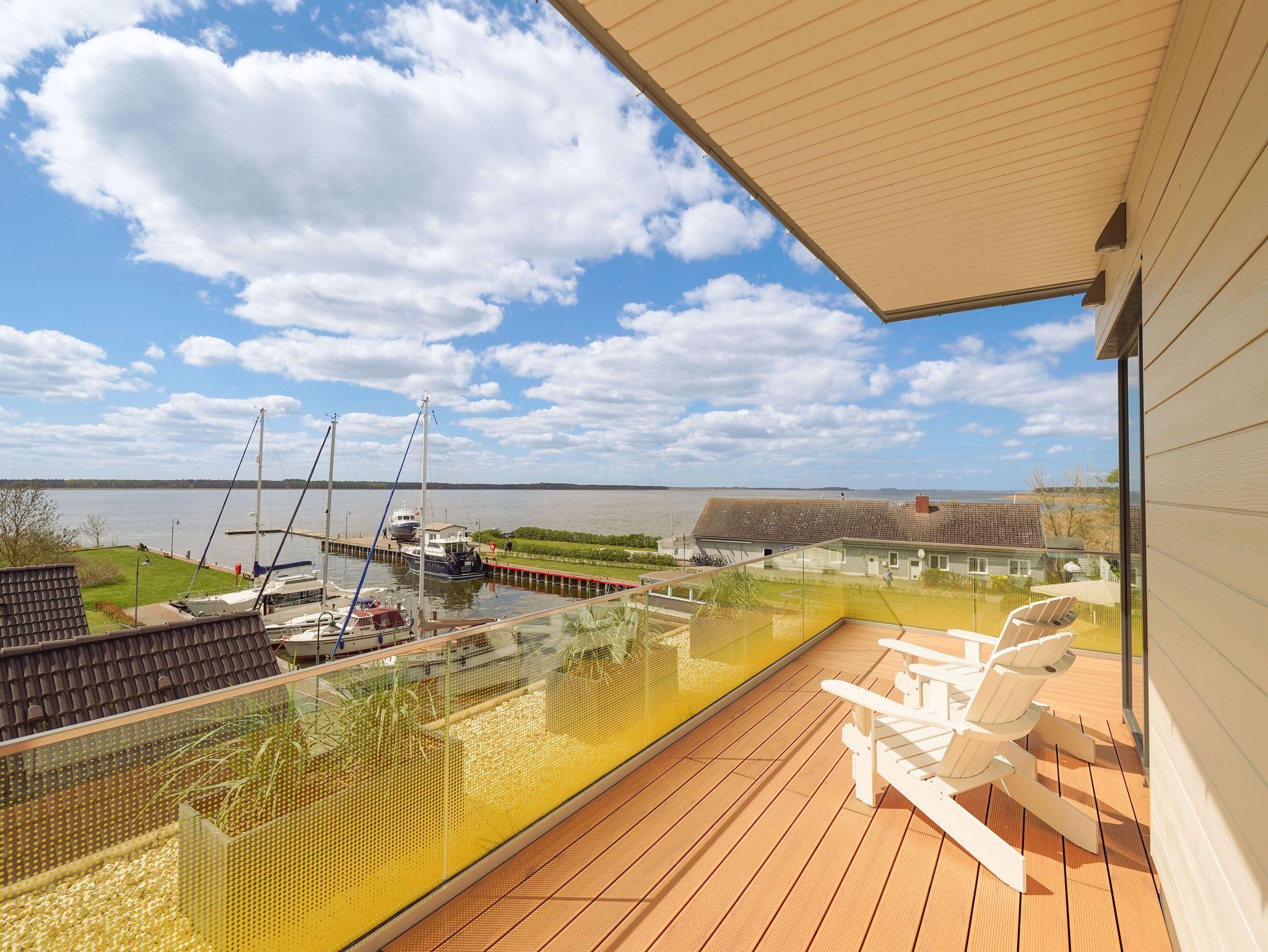 75m² Suite im EG, barrierefrei, bis zu 4 Personen. Schlafzimmer mit Doppel-Boxspringbett (180x200), 15 m² Veranda mit einmaligem Blick auf den Hafen. Nichtraucher-Suite. Hund möglich: 15€/Tag. Parkplatzund WLAN sind inklusive.Dachsauna mit Terrasse, Fitnessraum und Frühstück sind vor Ort zu buchbar. Wäschepaket und Endreinigung einmalig 139,- €.