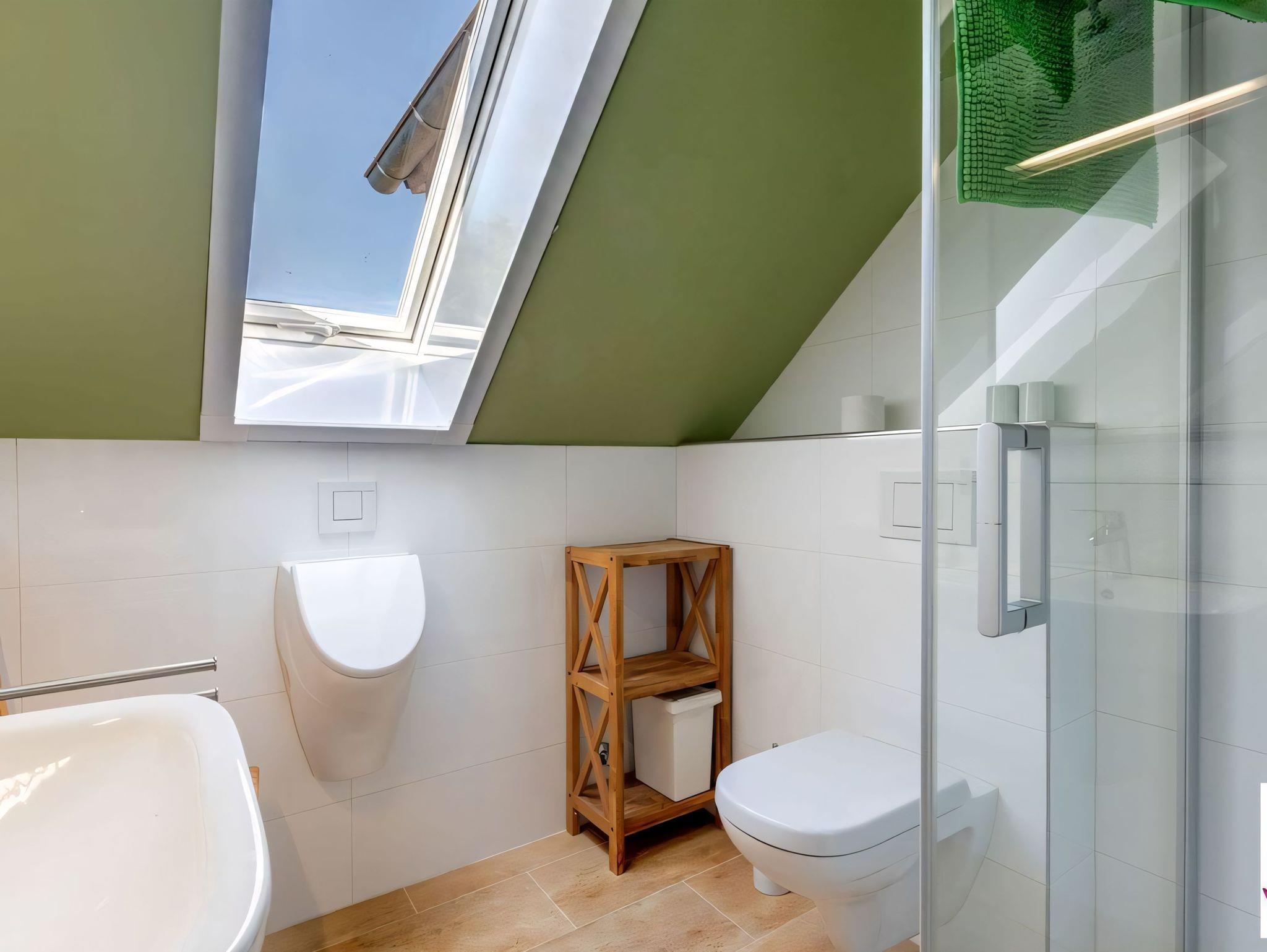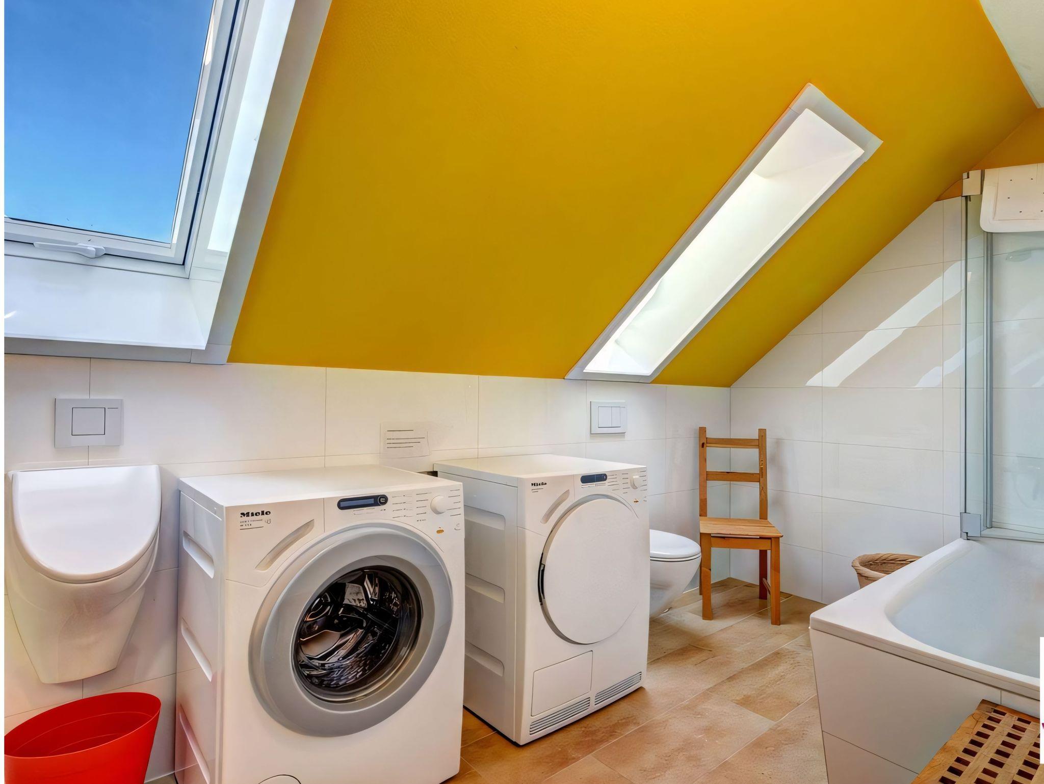 Zwei Bäder sorgen für zusätzlichen Komfort: Eines ist mit einer Dusche und WC ausgestattet, das andere bietet eine Badewanne sowie eine Waschmaschine und einen Trockner.