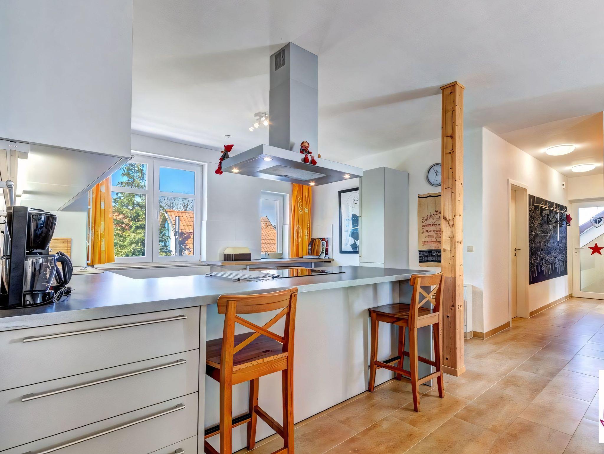 Die voll ausgestattete Küche mit angrenzendem Wirtschaftsraum bietet alles, was für einen unabhängigen Urlaub erforderlich ist - vom Kochen und Backen über Spülen bis hin zu Waschen, Trocknen und Bügeln. Für den täglichen Bedarf können Sie im nahegelegenen Dorfladen in Warthe einkaufen.