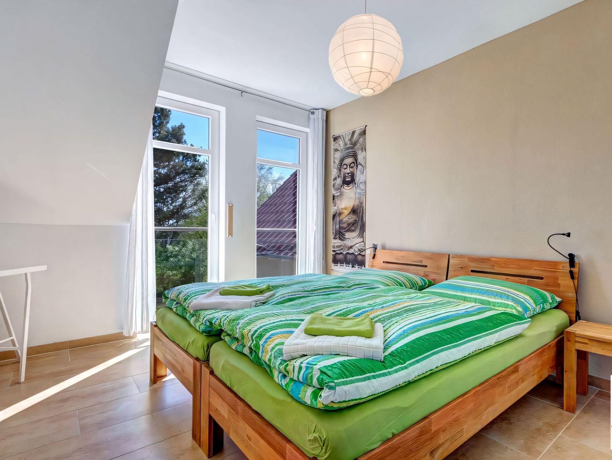 Die Küche ist vollständig ausgestattet und lässt keine Wünsche offen: Sie verfügt über einen Elektroherd mit Backofen, einen Kühlschrank mit Tiefkühlfach, einen Geschirrspüler, eine Mikrowelle und verschiedene Küchenhelfer. Die zwei Schlafzimmer bieten Platz für erholsame Nächte - eines mit einem Doppelbett, das andere mit einem Doppelbett und einem Einzelbett.