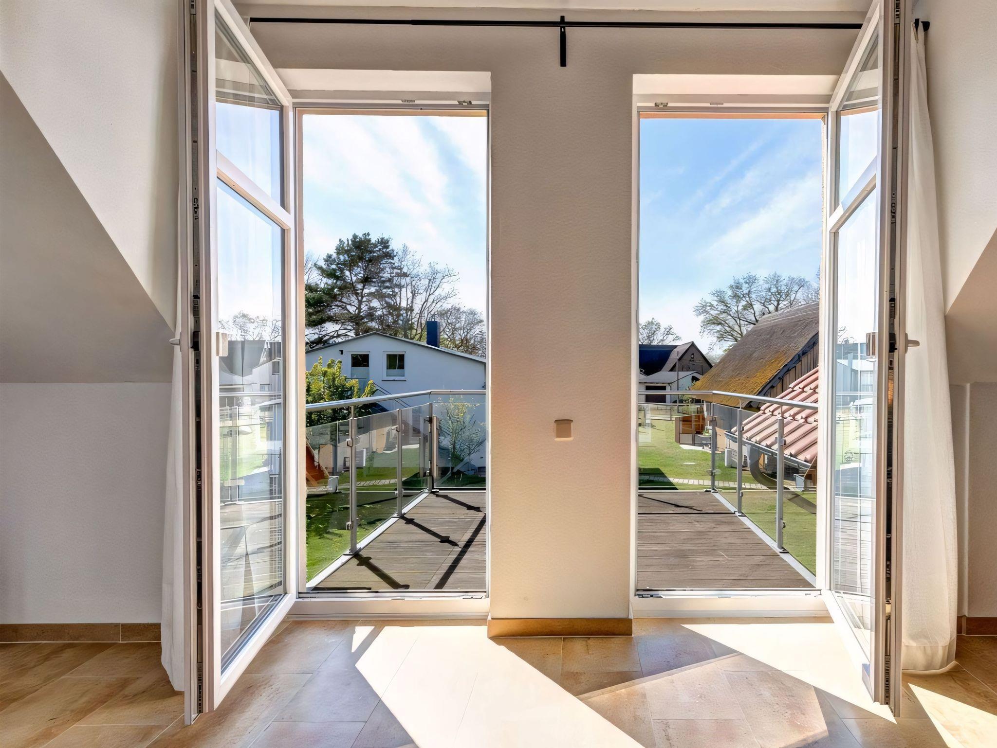 Das Haus befindet sich nur etwa 50 Meter vom Wasser entfernt in der zweiten Reihe der Siedlung. Die nach Süden ausgerichteten Terrassen und die großzügige Rasenfläche bieten eine besonders ruhige Atmosphäre, die durch den minimierten innerörtlichen Verkehr noch verstärkt wird. Die geräumige Wohnung (130 qm) ist komfortabel eingerichtet und verfügt über zwei Bäder (mit Toilette, Urinal und Dusche).