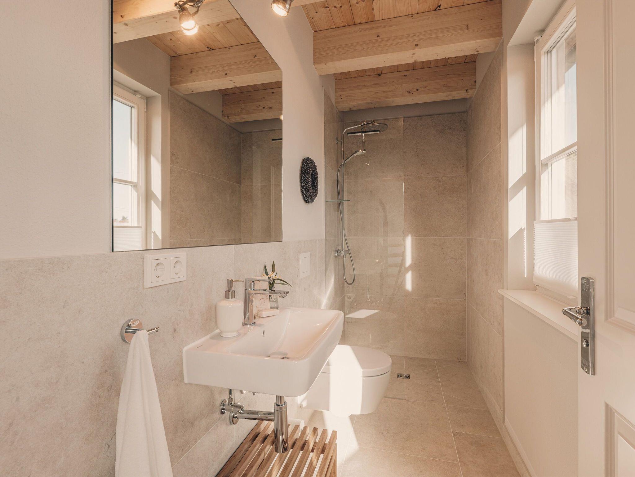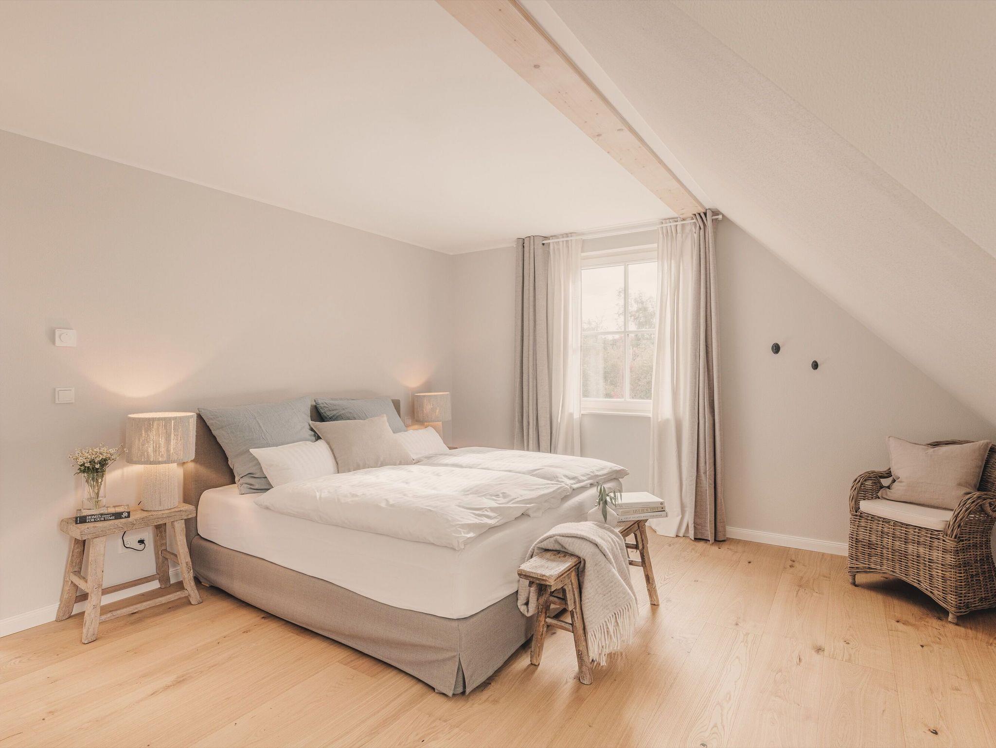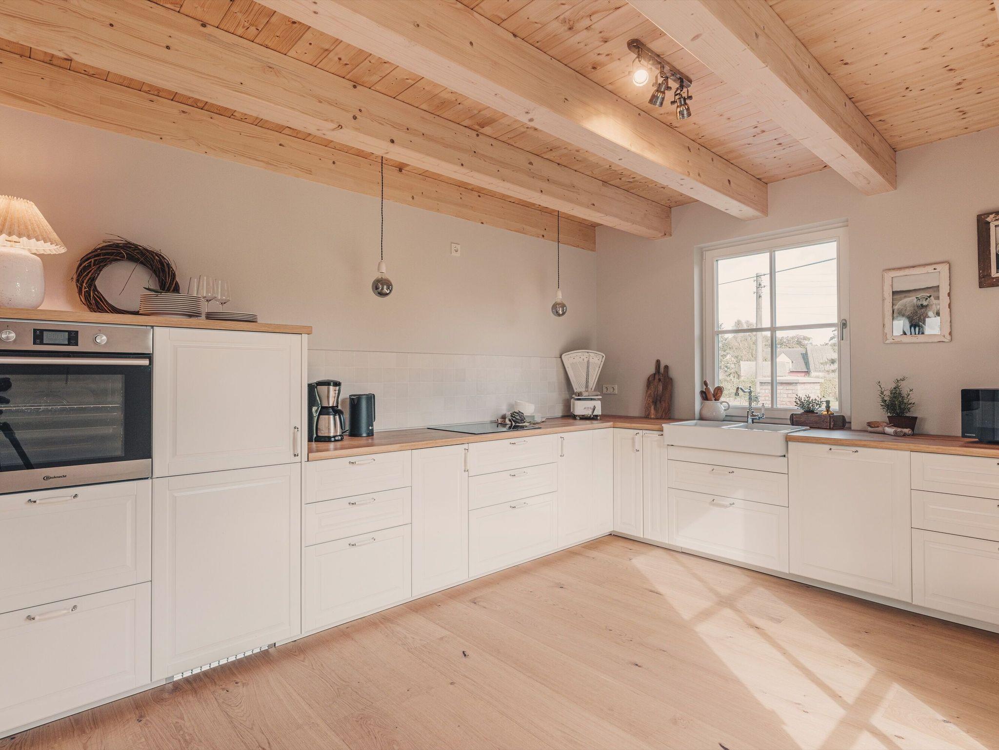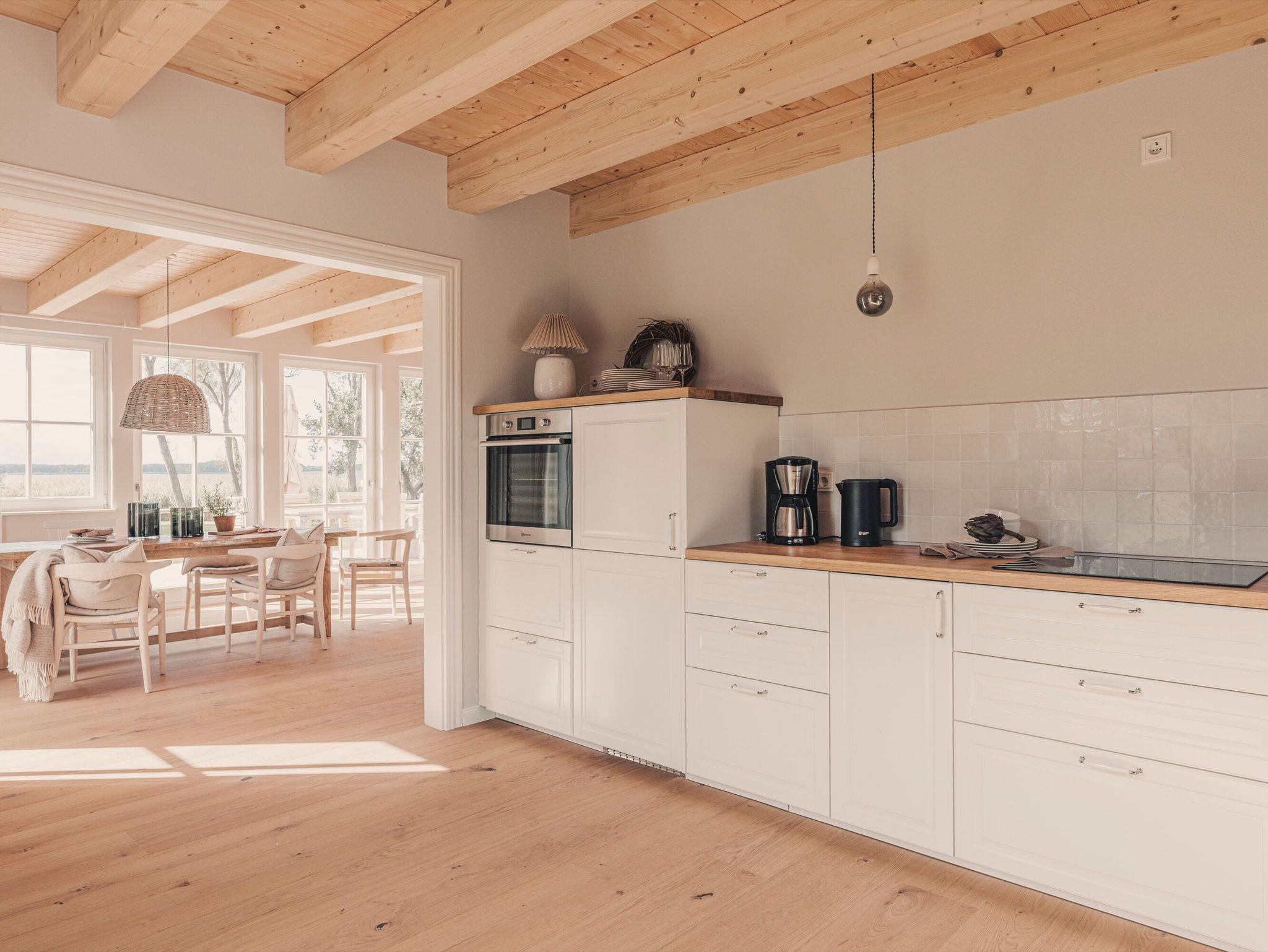 An kühleren Tagen lädt ein wärmender Kamin zum gemütlichen Verweilen ein, während die voll ausgestattete Küche ausgedehnte Kochabende garantiert. Erleben Sie echte Erholung mit 2 modernen Bädern, ausgestattet mit 2 großen Regenduschen, 2 WCs und einer Badewanne. Fußbodenheizung im gesamten Haus und Landhausdielen aus Eiche sorgen für warme Füße und sanfte Behaglichkeit.