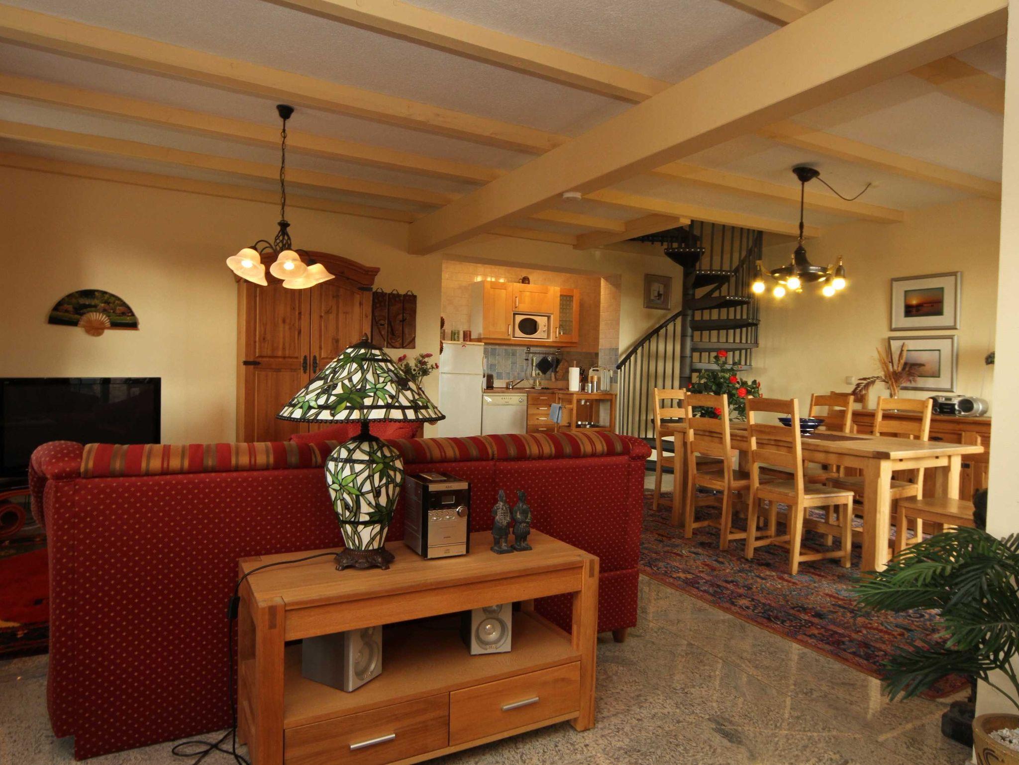 Über eine Wendeltreppe gelangen Sie in einen geräumigen Wohnflur des DG, von dem drei Schlafräume abzweigen. In dem Wohnflur befindet sich eine weitere gemütliche Sitzgelegenheit, darüber hinaus zweigt von hier ein weiterer Balkon mit Relaxliege ab. Alle Räume im DG haben Dachschrägen. Zwei Schlafzimmer sind mit Ehebetten (1,80x2,00) und eins mit Einzelbetten ausgestattet.