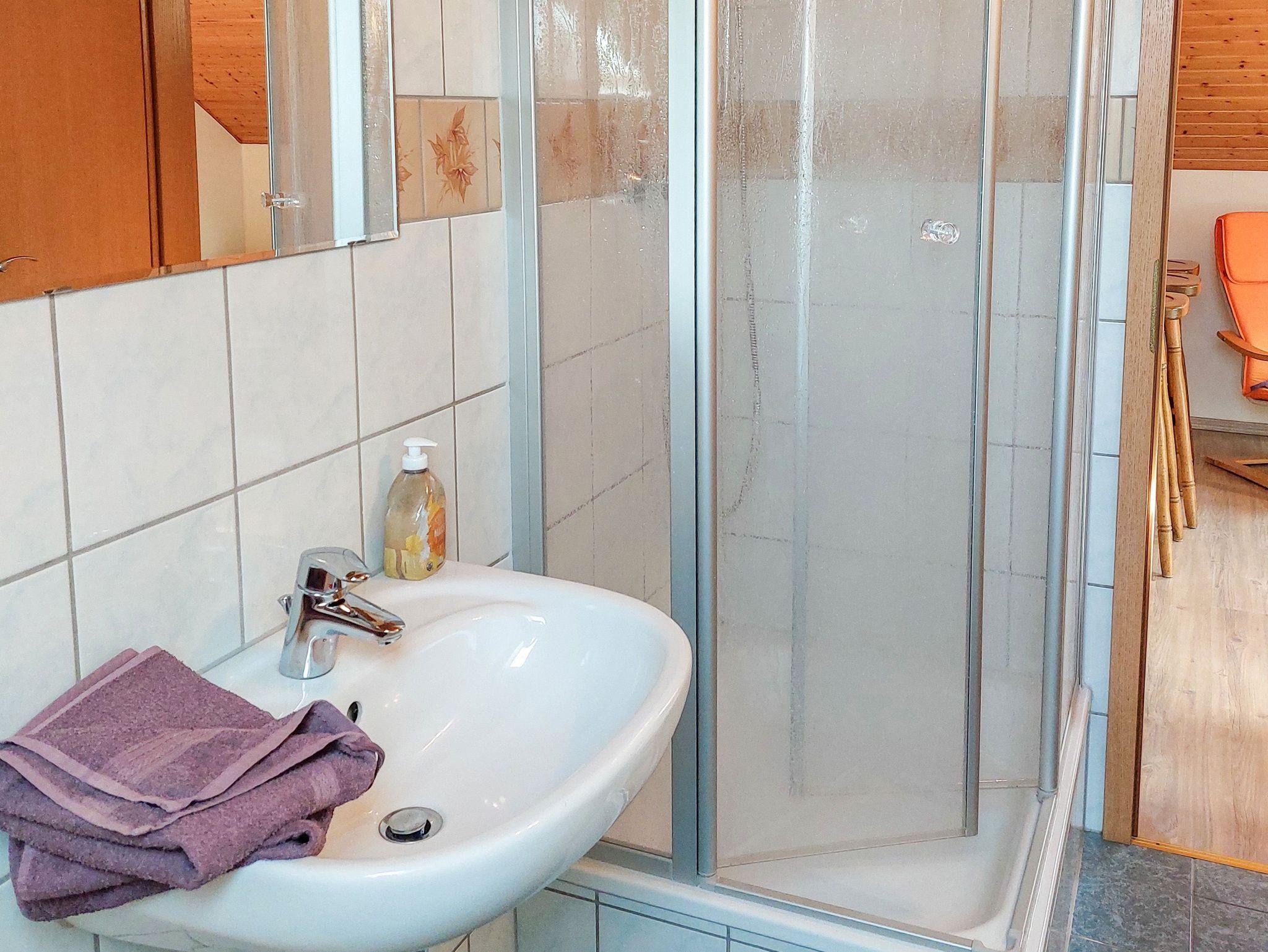 Im Schlafzimmer sorgt ein gemütliches Doppelbett (180x200, getrennte Matratzen) für erholsamen Schlaf, ein Kleiderschrank bietet genügend Platz für dein Gepäck. Das Bad ist mit Dusche, WC und Waschbecken ausgestattet und lädt dank des Tageslichts zu einem angenehmen Start in den Tag ein. Der rustikale Landhausstil und das helle Laminat schaffen eine freundliche, warme Atmosphäre.