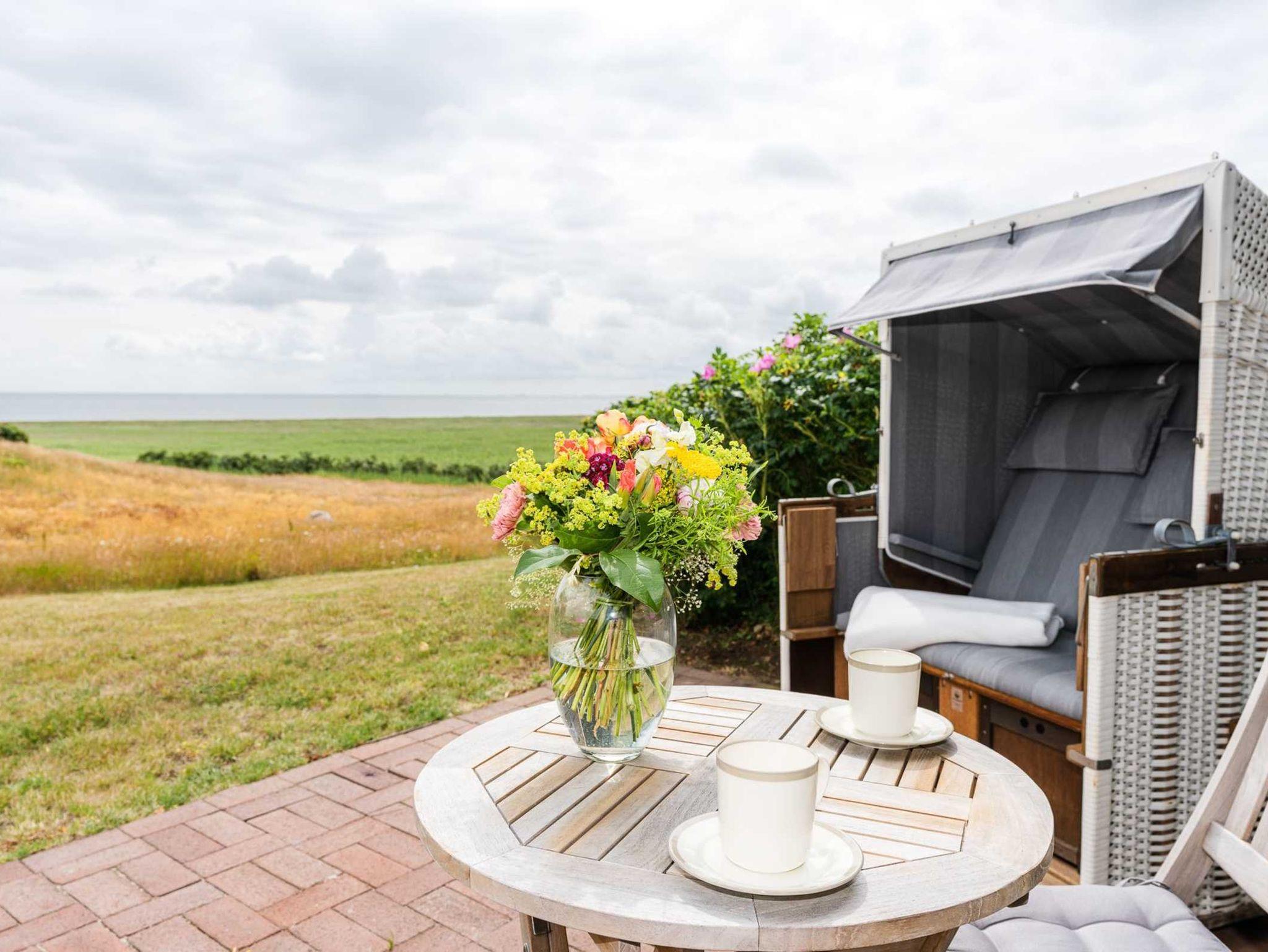 Die Wohnung erstreckt sich über 2 Etagen. Vom Wohnzimmer und der Terrasse aus schauen Sie direkt über ein weitgehend naturbelassenes Grundstück direkt auf das Meer. Das bunte Treiben vieler Wildvögel, so wie die wechselnden Gezeitenströme könne Sie hier ganz in Ruhe beobachten. Die Wohnung Sehnsucht nach Meer hat vom Wohnraum und der großen Terrasse einen wunderschönen Blick auf das Wattenmeer.