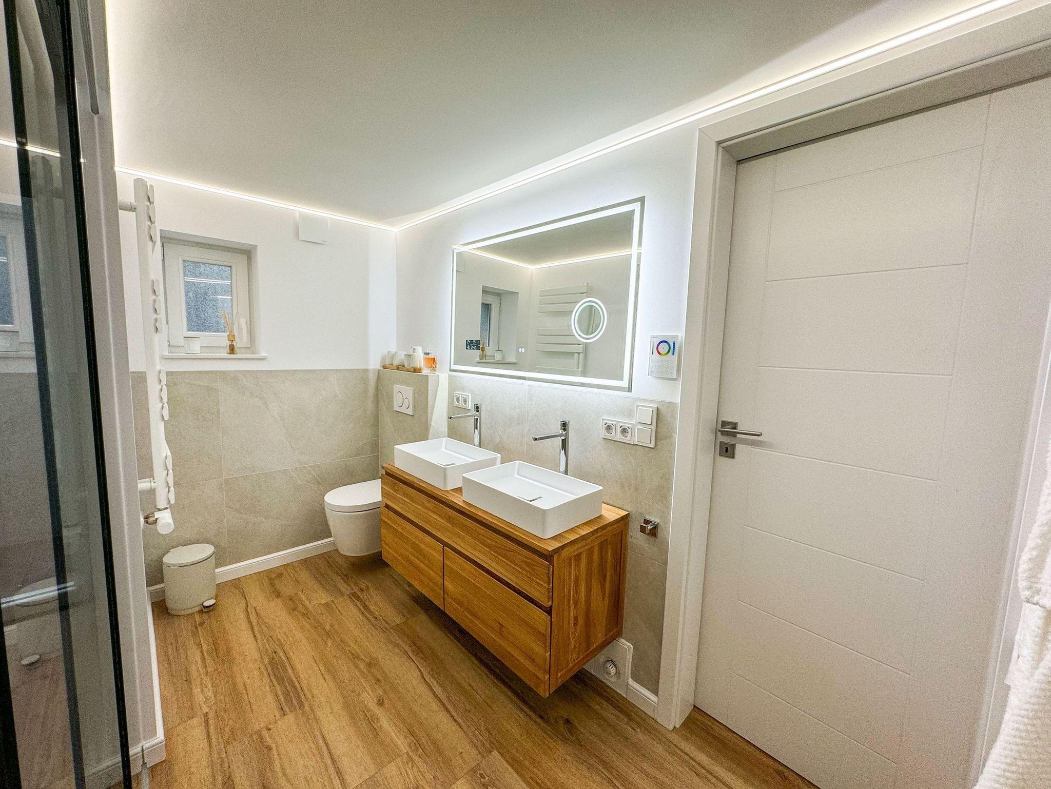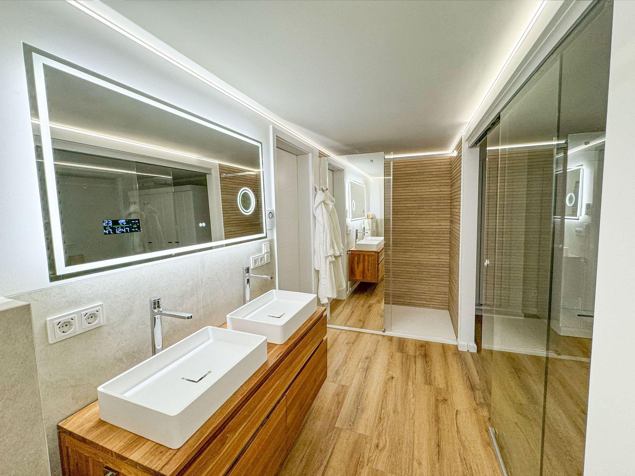Diese hochwertig ausgestattete Wohnung ist dank der lichtdurchflutet. Im Wohnraum finden Sie Ihren Esstisch sowie die geschmackvoll eingerichtete Wohnlandschaft. Ihre eigene Terrasse erreichen Sie von dort aus. Die beiden Duschbäder finden Sie in unmittelbarer Nähe zu den Schlafzimmern. Exklusive Holzeinbauten und eine rundherum aufeinander abgestimmte Einrichtung sorgen dafür, dass Sie sich ab der ersten Minute wie Zuhause fühlen.