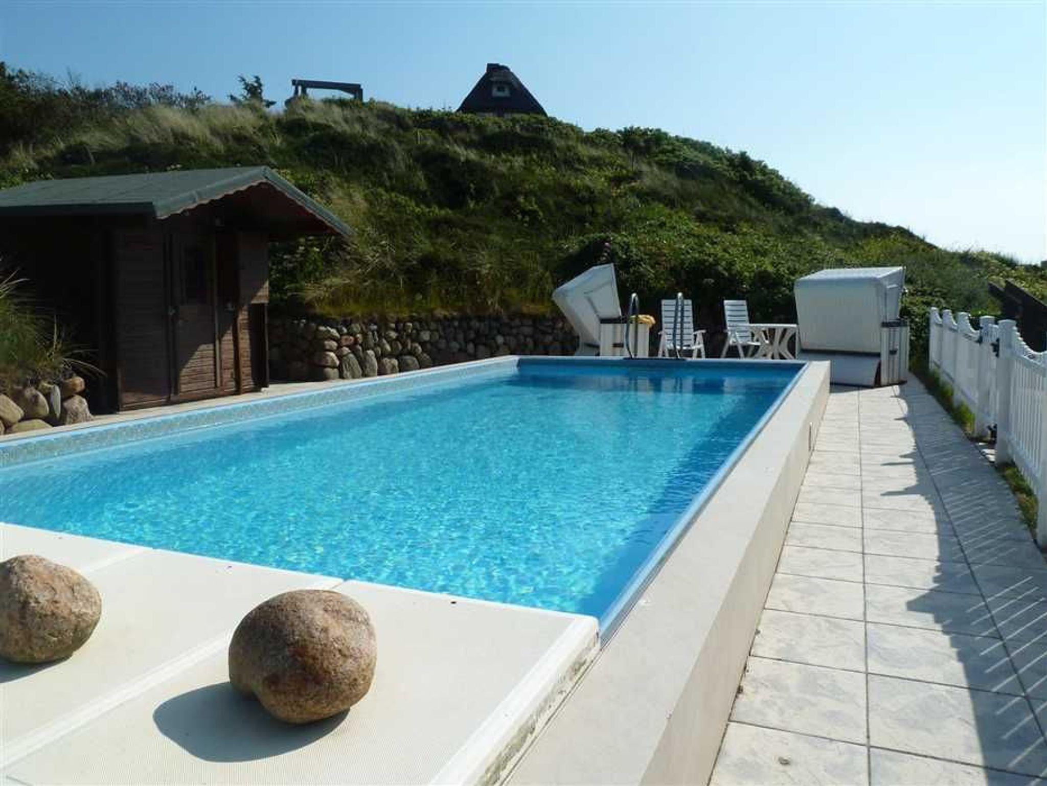 Hier finden Sie Rantums einzigen beheitzten Außenpool. Zum Strand und zu den den Geschäften des täglichen Bedarfs sind es nur wenige Schritte. Ihren Parkplatz finden Sie direkt vor dem Haus. In die Inselmetropole sind Sie nur ca. 10 Minuten unterwegs. Anbindung an das gut ausgebaute Sylter Busnetz ist gegeben.