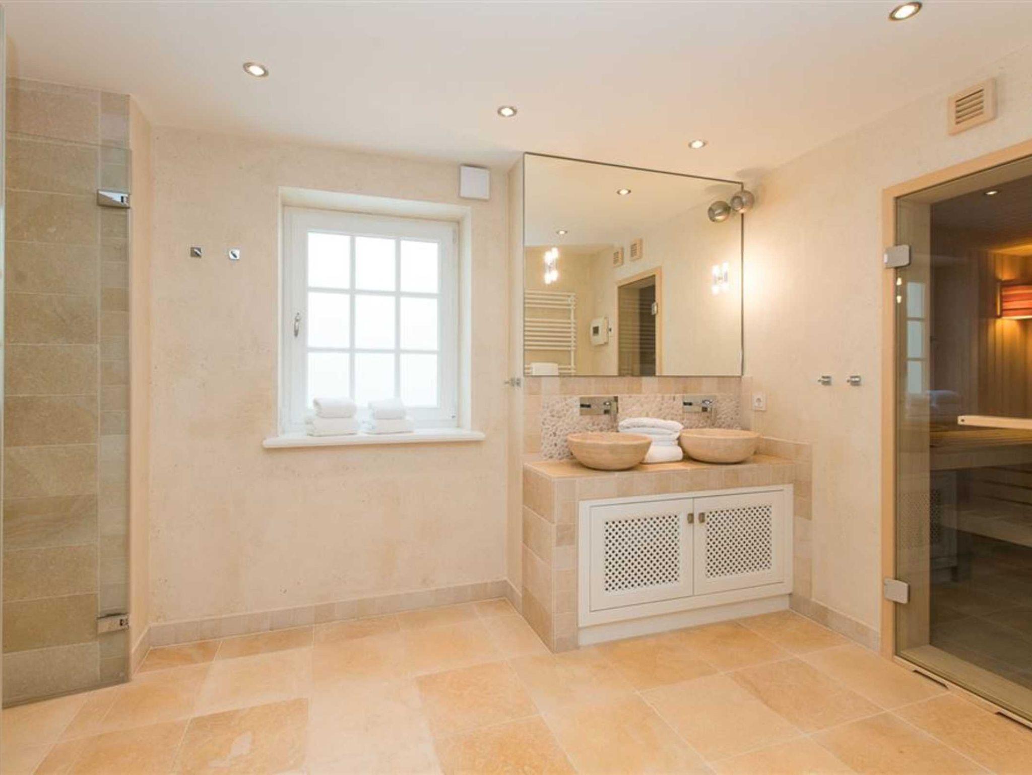 Dieses luxuriöse und mit viel Liebe zum Detail errichtete Reetdach Hausteil mit Einzelhauscharakter bietet Ihnen Platz für bis zu 6 Personen. Jeweils ein Gäste-WC in Erd- und Untergeschoss. Dazu wartet auf Sie ein luxuriöses Wellnessbad, dass einer wahren Wohlfühloase gleicht. Das Wellnessbad ist ausgestattet mit einem Doppelwaschbecken und beinhaltet zusätzlich neben einer Sauna, eine riesige ebenerdige Dusche ausgestattet mit einer Schwall- und einer Regendusche.