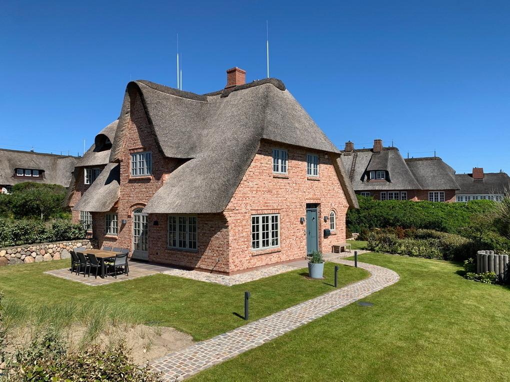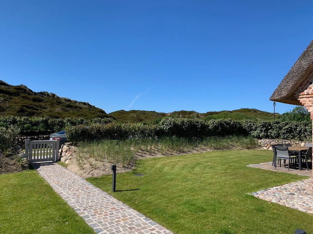 Das ist nicht zu toppen - wunderschöne Haushälfte in herrlich ruhiger und strandnaher Lage mit exklusiver Ausstattung. Auf ca. 180qm wohnen Sie in einem Traumhaus. Im Erdgeschoss gelangen Sie durch einen großzügigen Eingangsbereich mit großer Garderobe und Gäste-WC in ein stilvolles Wohnzimmer. Genießen Sie gemeinsame Stunden in der großzügigen Essecke oder in der Sitzecke bestehend aus drei Couchen und Blick zu dem modernen Kamin. Die elegante Küche bietet neben dem Induktionsherd, einen großen Kühlschrank, ein Gefrierschrank und einen extra Flaschenkühlschrank. Nespresso-Maschine, Backofen, Mikrowelle und Geschirrspüler dürfen hier natürlich nicht fehlen. Durch eine Klönschnacktür gelangen Sie in den hinteren Teil des Gartens mit Sonnenkuhle. Vom Wohnzimmer aus geht es auf die Südterrasse. Im Obergeschoss befinden sich das Hauptschlafzimmer mit Blick auf die Dünen und großem eigenen Bad mit Dusche und Wanne sowie ein kleineres, aber nicht weniger schönes, Schlafzimmer mit eigenem Duschbad / WC. Im Untergeschoß gibt es zwei weitere Schlafzimmer mit Doppelbetten und Einbauschränken sowie einem Duschbad/WC. Alle Schlafzimmer sind mit hochwertigen Holzböden, Fußbodenheizung und TV ausgestattet. Über die TVs können Sie auch Radio hören. W-LAN ist vorhanden (ohne Gewähr). Im Saunabereich mit Dusche lassen sich auch stürmische Tage herrlich entspannt genießen. Ein Hauswirtschaftsraum mit Waschmaschine und Trockner, Kinderhochstuhl und Kinderreisebett stehen Ihnen kostenlos zur Verfügung. Ein Pkw-Abstellplatz befindet sich direkt am Haus. Tierhaltung ist nicht gestattet! Grillen und Rauchen ist nicht gestattet. Die Wäsche-Erstausstattung ist im Preis inbegriffen. Nachbestellungen erfolgen kostenpflichtig.