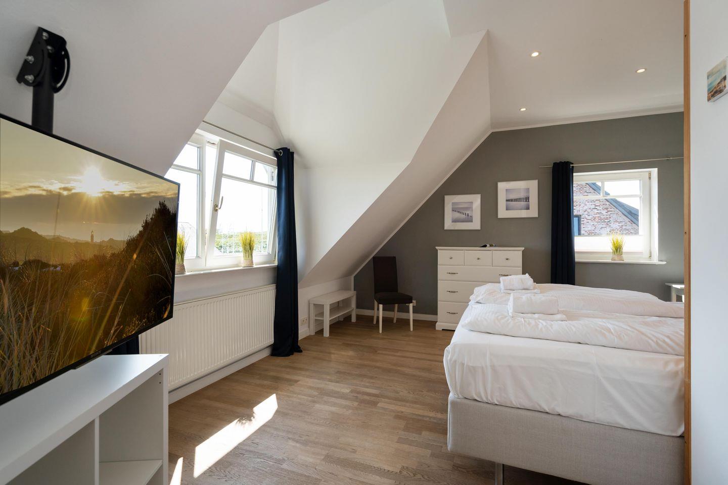 Dieses charmante ca. 85 m² große Ferienhaus für 3 bis 4 Personen befindet sich in einer ruhigen Lage in unmittelbarerer Strandnähe. "Am Sandwall West" bietet Ihnen eine offene, moderne und voll ausgestattete Küche samt Geschirrspüler mit angrenzendem Wohn- und Esszimmer sowie hellem Wintergarten. Im Erdgeschoss befindet sich ansonsten ein Schlafzimmer (140x200 cm) sowie ein Gäste WC. Über eine Treppe gelangen Sie ins Obergeschoss. Dort erwartet Sie großzügiges Doppelschlafzimmer (180x200 cm) mit TV sowie das moderne Badezimmer mit Dusche und Badewanne. Nutzen Sie gerne die schöne Südterrasse samt Strandkorb (in der Saison). Das Ferienhaus verfügt über WLAN, einen zugehörigen PKW-Stellplatz und eine Waschmaschine (in der Küche). Haustiere sind leider nicht erlaubt.