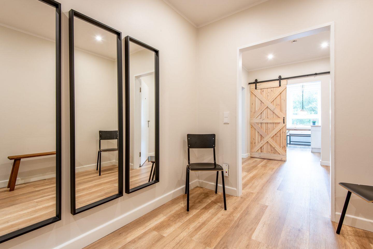 Großes Apartment mit 3 Schlafzimmern (jeweils mit Doppelbett), 2 Bädern, einem großen Wohnzimmer mit Ausgang zur großen Holzterrasse und dem angrenzenden Waldstück sowie voll ausgestatteter Küche mit Geschirrspüler und Esstisch für 6 Personen.
