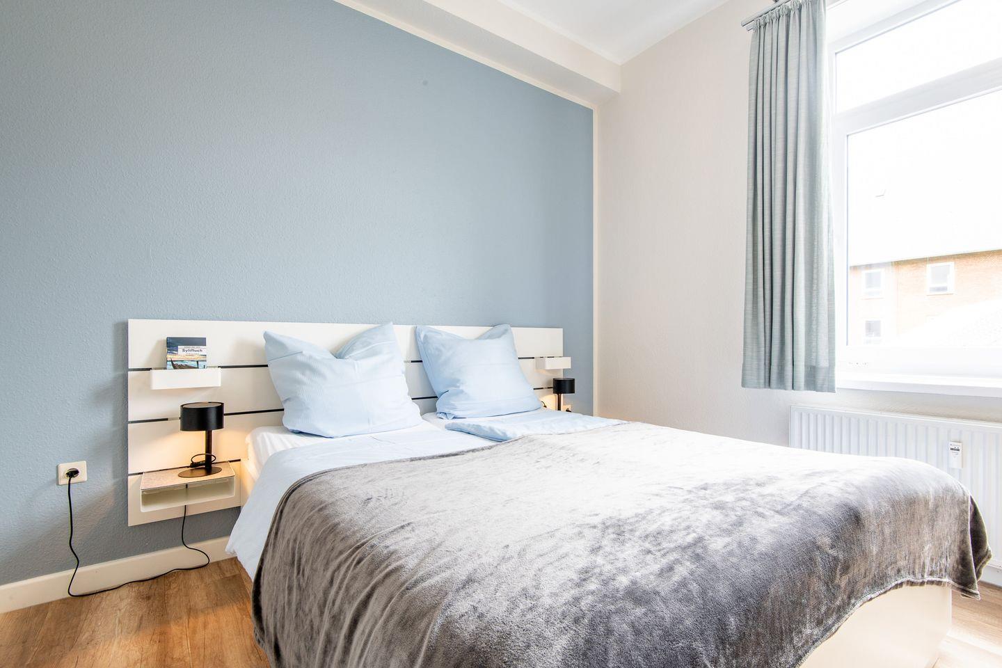 - Das Schlafzimmer bietet ein Doppelbett (160 x 200 cm).