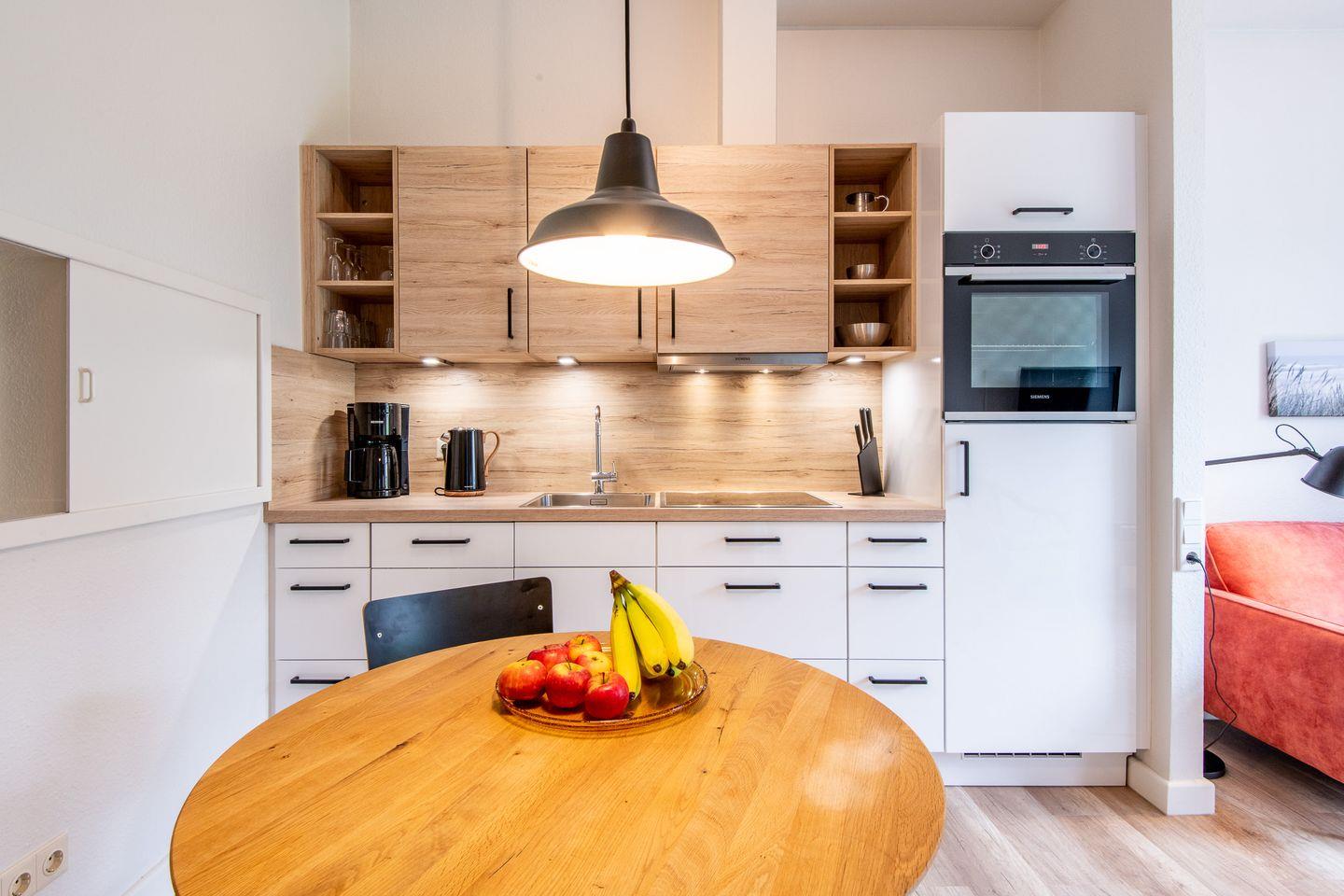- Der Essbereich mit Küchenzeile befindet sich im Eingangsbereich der Wohnung. Von hier aus gelangen