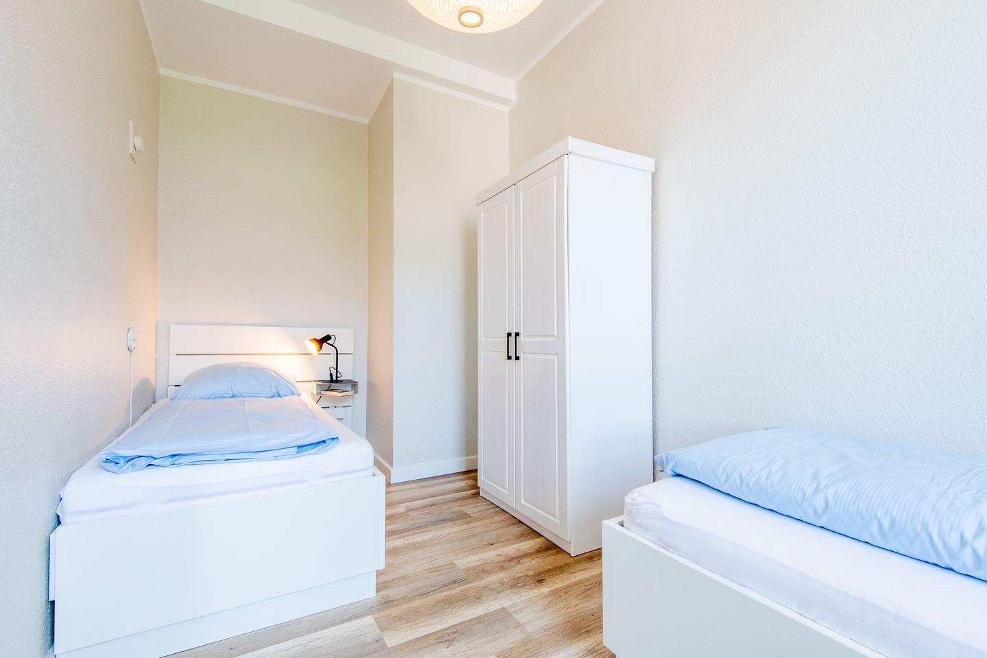 Es erwartet Sie eine im Frühjahr 2022 renovierte Ferienwohnung. Das Wohnzimmer hat einen abgetrennten Schlafbereich mit Doppelbett 2x80x200cm, das Schlafzimmer verfügt über zwei Einzelbetten je 90x200cm.