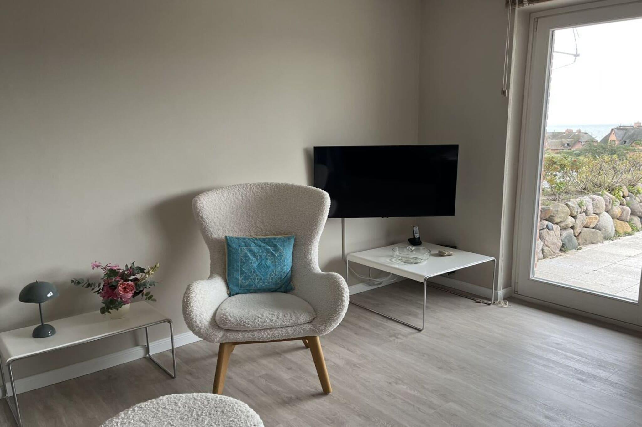 Diese 2 Zimmerwohnung unter Reet liegt auf der Düne in Rantum-Süd (1a Lage) und hat einen herrlichen Wattblick. Die Wohnung wurde 2021 hochwertig und modern saniert. Bei der Einrichtung wurden Antiquitäten mit modernen Klassikern kombiniert. Die Außenbereiche und Fassade wurde vor 2022/23 vollständig saniert. Auf der Südost-Terasse befindet sich ganzjährig eine Teak Sitzgruppe, 2 Fiam-Liegestühle und ein Sonnenschirm komplettieren die Ausstattung für den Sommer. Im Wohnzimmer befindet sich eine Sitzecke bestehend aus einem Sofa und Sessel mit einem moderner Smart TV. Sowie ein Esstisch mit Blick auf das Wattenmeer. Im nach Nordwesten ausgerichteten Schlafzimmer befinden sich neben dem Doppelbett mit guten Leselampen ein geräumiger Schrank und ein Sessel. Dir Küche ist komplett mit Naturstein-Arbeitsfläche, kleinem Backofen und Spülmaschine ausgestattet. Im Badezimmer finden sie neben der funktionalen Ausstattung auch eine Waschmaschine. Die Wohnung verfügt über einen eigenen Garagenstellplatz.