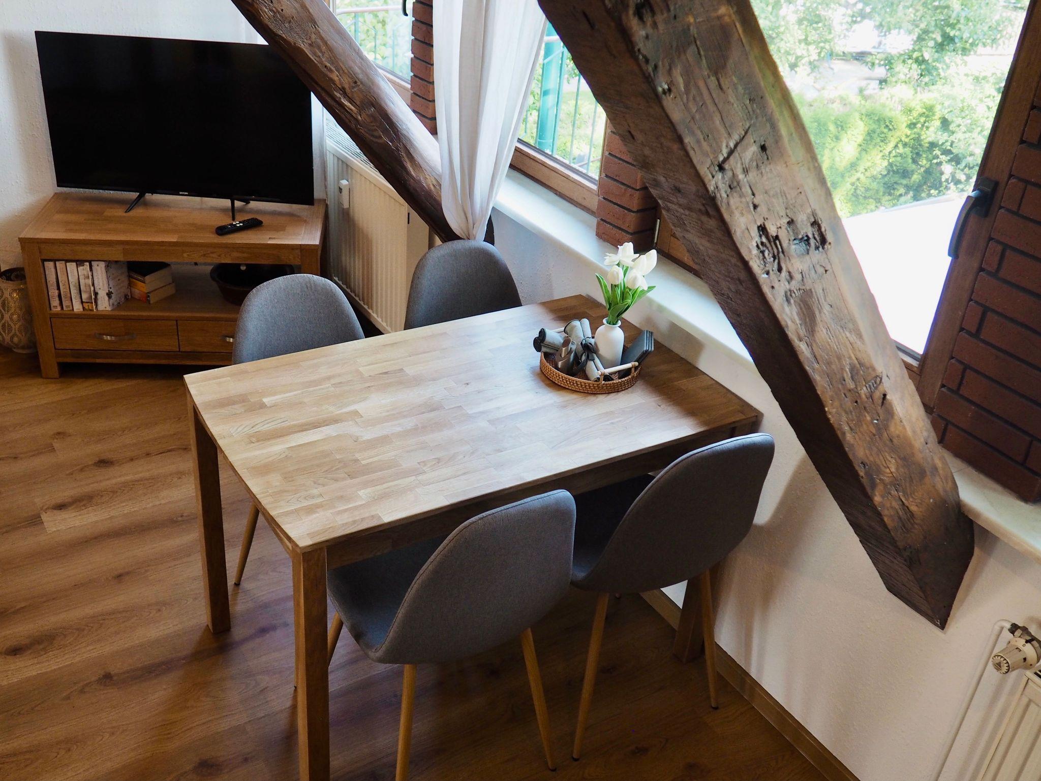 Freuen Sie sich auf ein gemütliches Wohnzimmer mit offener, gut ausgestatteter Küche und einem einladenden Essbereich für bis zu vier Personen ? ideal für gemeinsame Mahlzeiten und entspannte Abende.
