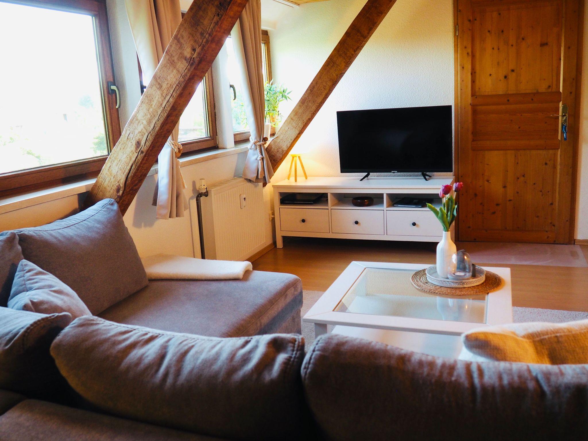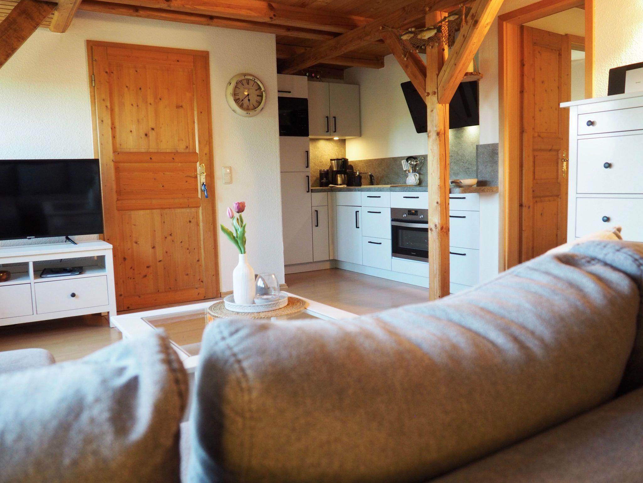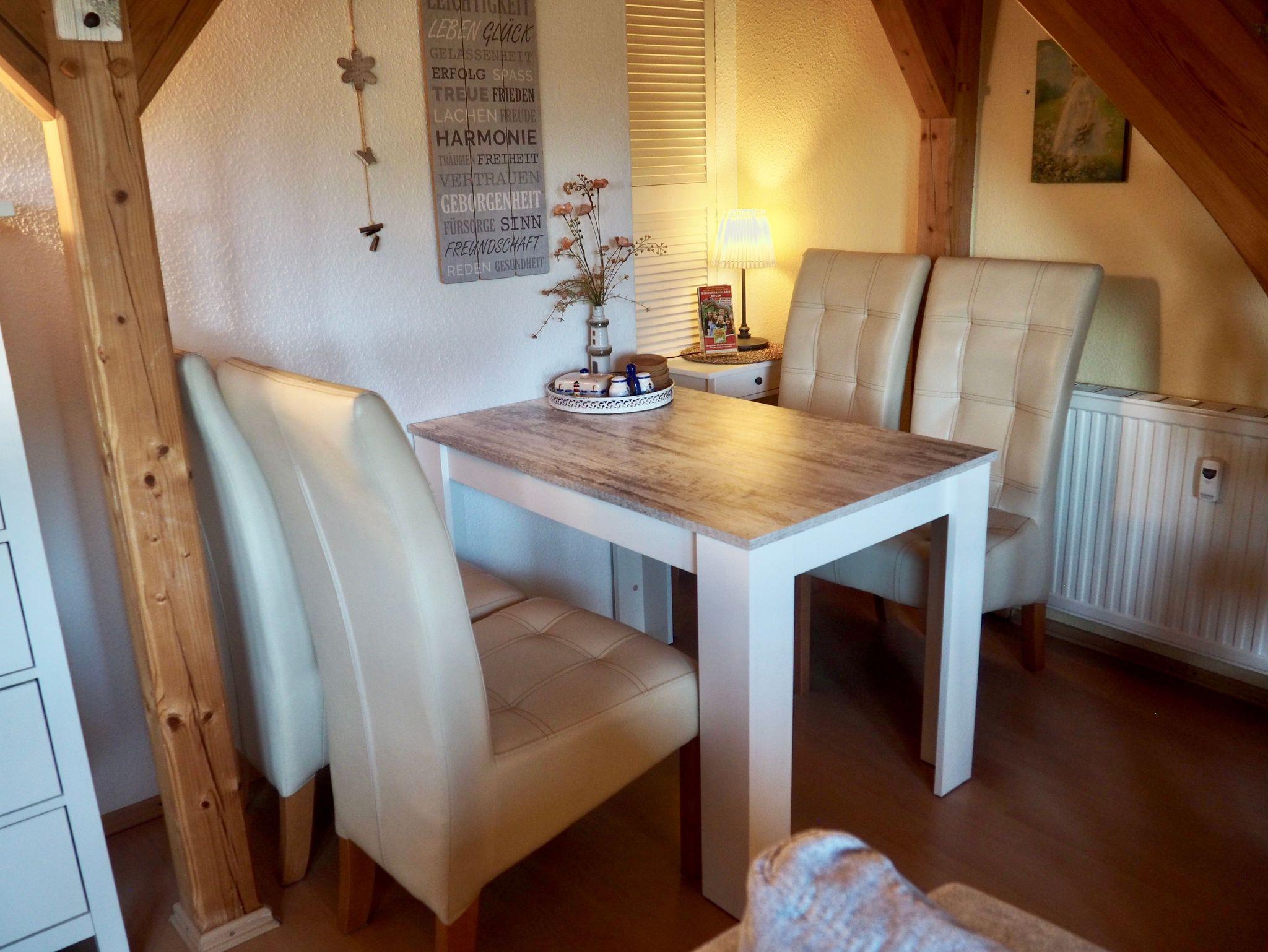 Freuen Sie sich auf ein gemütliches Wohnzimmer mit offener, gut ausgestatteter Küche und einem einladenden Essbereich für bis zu vier Personen ideal für gemeinsame Mahlzeiten und entspannte Abende.