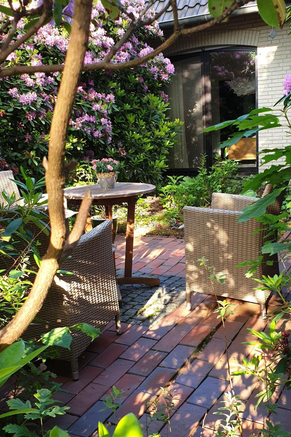 The outdoor area of our holiday flat invites you to unwind. Enjoy relaxing hours on the approx. 10 m² terrace, which is directly adjacent to the living room and bedroom. The garden, which is for your exclusive use, provides the perfect backdrop for reading a book in peace or simply enjoying the fresh air. Our accommodation also uses solar energy to generate environmentally friendly energy.