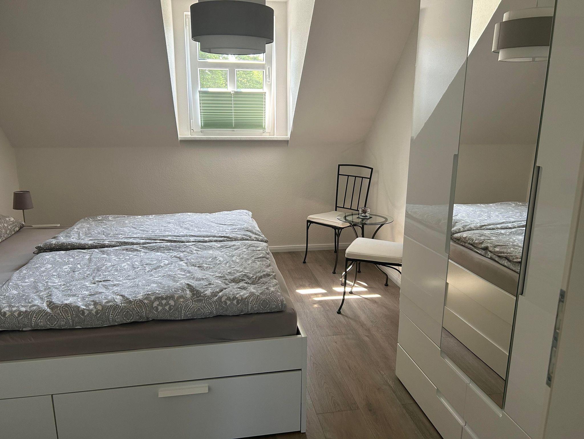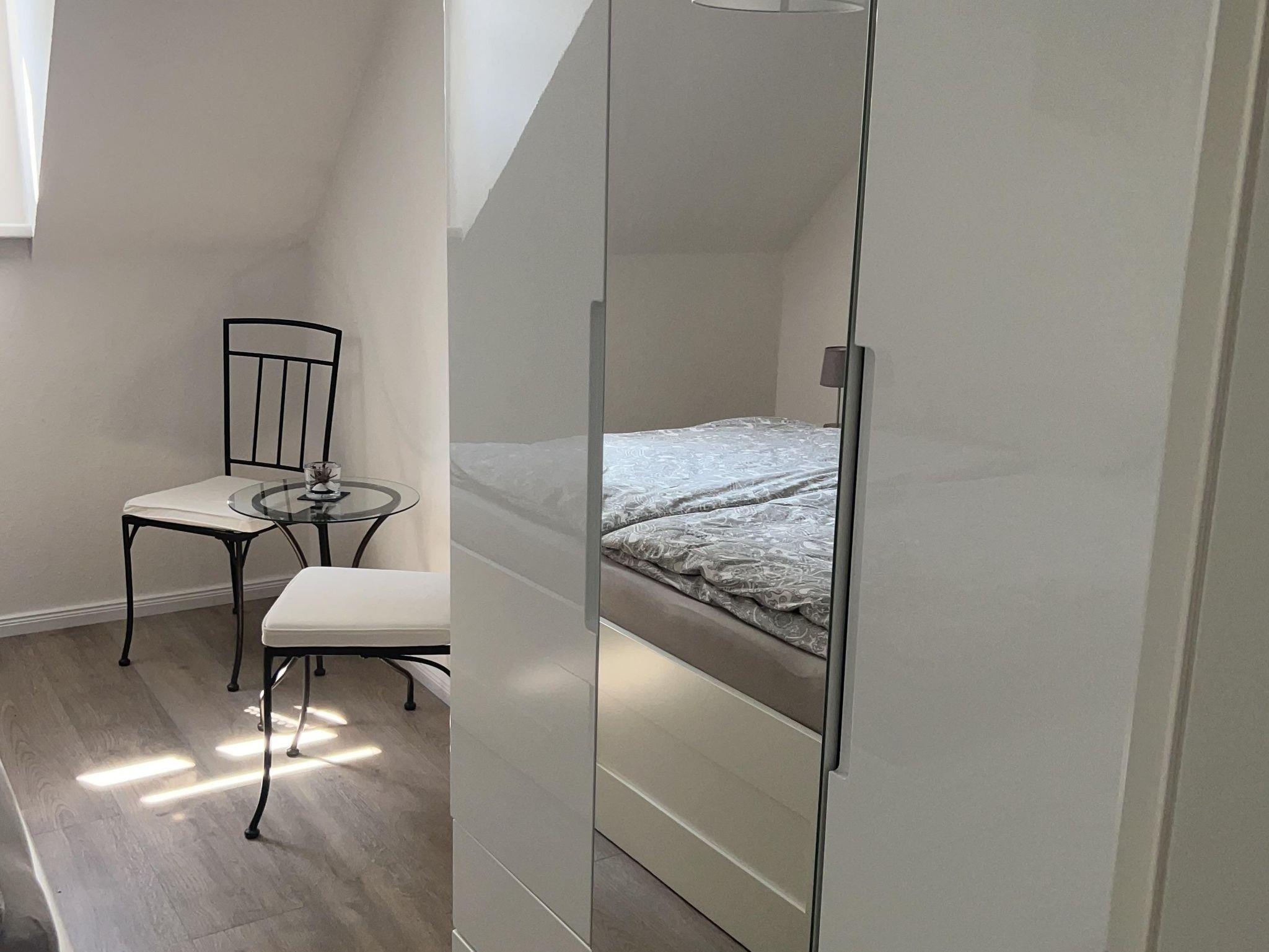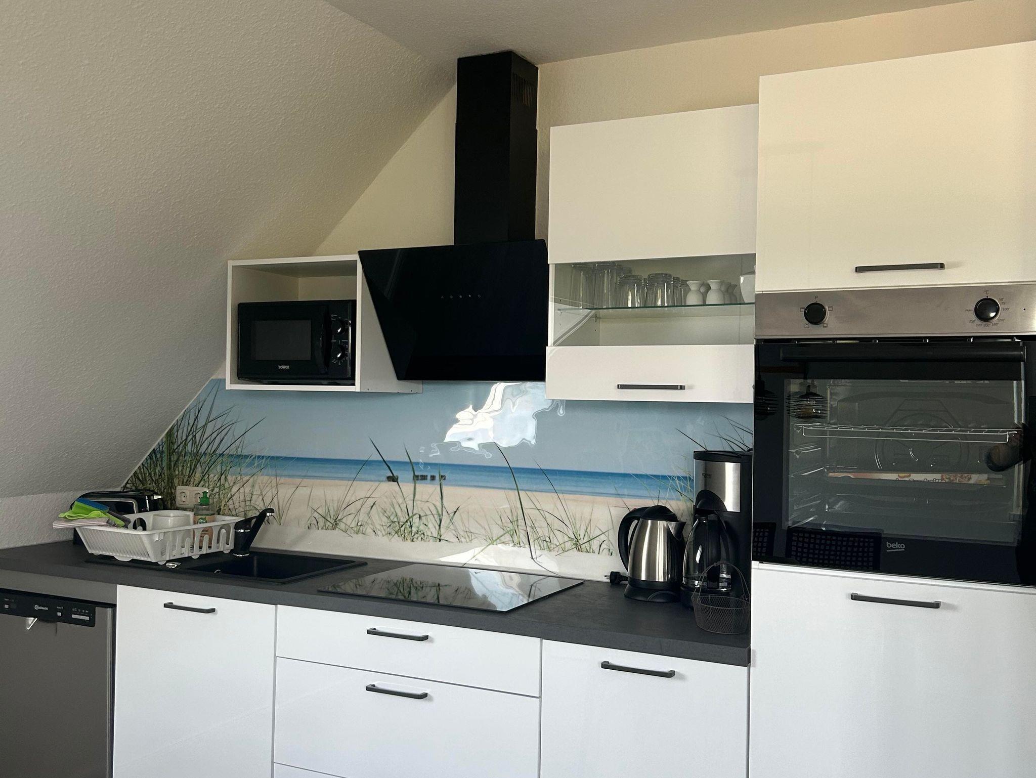 Die Wohnung befindet sich in der ersten Garage und verfügt über einen eigenen Stellplatz direkt vor der Tür. Sie bietet ein gemütliches Schlafzimmer mit Doppelbett und Kleiderschrank sowie einen Wohnbereich mit komfortablem Schlafsofa. Die offene Einbauküche ist komplett ausgestattet mit Kühlschrank, Mikrowelle, Backofen, Ceranfeld, Geschirrspüler, Kaffeemaschine, Toaster und Wasserkocher. Das moderne Tageslichtbad verfügt über eine Dusche, WC, Fön und Kosmetikspiegel. Bettwäsche und Handtücher sind inklusive.