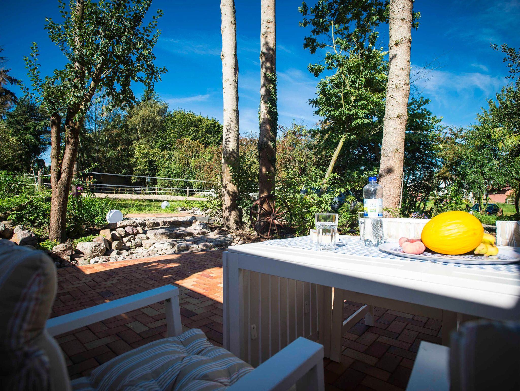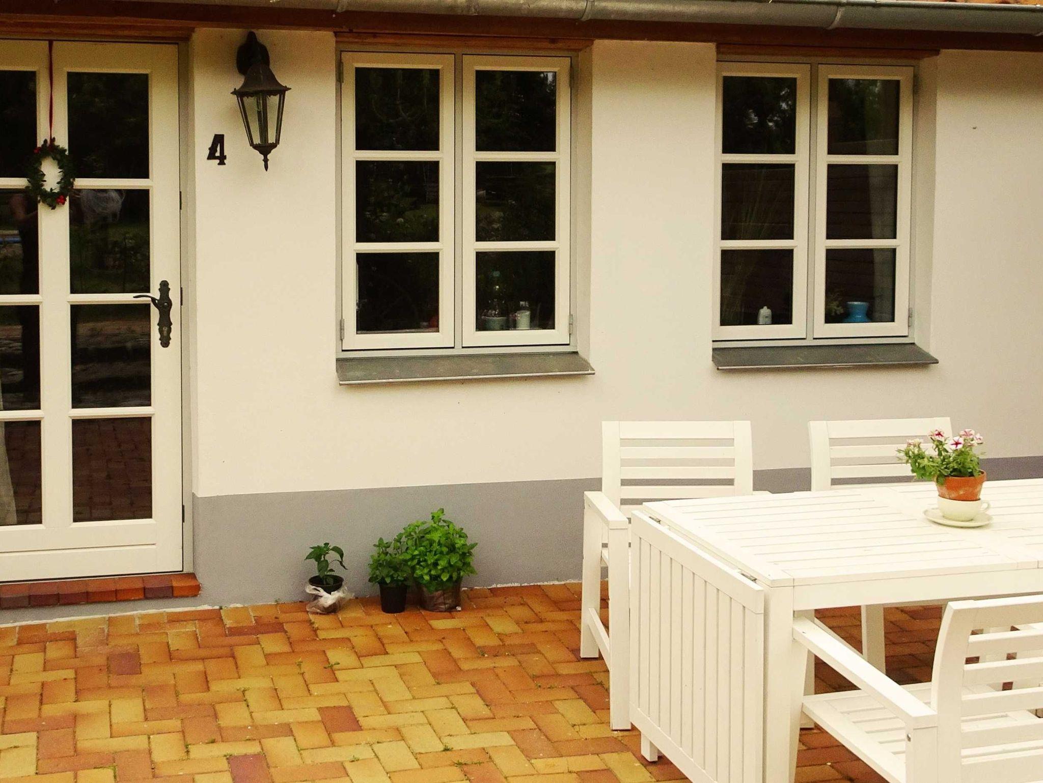 Der Parkplatz der Wohnung liegt unmittelbar vor der 32 m² großen Südwest-Terrasse die mit Holzmöbeln und Kissen ausgestattet ist. Die ca. 61 m² große Wohnung erstreckt sich über 2 Etagen. Im EG der Wohnung befindet sich der offene Wohnraum mit Küche, Esstisch und gemütlichem Sofa mit Blick auf den 40 Flachbildfernseher. Das Sofa lässt sich mit wenigen Handgriffen zum bequemen Doppelbett ausziehen. Eine Musikanlage mit CD-Player und USB-Anschluss sorgen für Unterhaltung und gemütliche Entspannung. Die Hochglanzeinbauküche lässt keine Wünsche offen. Sie umfasst Kühlschrank inkl. Gefrierfach, Spüle, Geschirrspüler, Vitrine mit Geschirr und Gläsern, einen Herd mit Cerankochfeld und Tastbedienung, einen Backofen sowie zwei Unterschränke mit Schubladen. Die Küchenausstattung ist komplett mit Töpfen und Pfannen und allen zum Kochen notwendigen Utensilien wie: Kartoffelstampfer, Dosenöffner, Korkenzieher, Sparschäler, Mixstab, Kochlöffel, Knoblauchpresse, anständige Messer etc. Ein Kaffeevollautomat der Firma Saeco und ein Milchaufschäumer zaubern einen perfekten Latte Macchiato. Zusätzlich gibt es einen Wasserkocher und Toaster. Das Geschirr und Besteck sind für 12 Personen damit der Geschirrspüler auch gefüttert werden kann. Außerdem gibt es Espressotassen, Milchkaffeetassen, Müslischalen und zum Teil antike Servierschüsseln und Platten. Der Essbereich grenzt an die Küche. Über dem Holztisch mit 4 antiken Stühlen thront ein wunderschöner Kronleuchter mit 12 Leuchten, der stufenlos gedimmt werden kann. Die Wohnung erstreckt sich über zwei Etagen. In die 1. Etage führt eine Holztreppe in einen kleinen Flur. Von hier aus geht es in das Bad und das Schlafzimmer. Das Badezimmer mit weißen Hochglanzfliesen ist ausgestattet mit einer Badewanne und Regendusche, einem Waschtisch mit zwei Schubladen, einem großen Spiegel mit zwei zusätzlichen Leuchten und einem Handtuchheizkörper. Es liegt ein Föhn mit Diffuser bereit sowie pro Person ein Bade- und ein Handtuch. Das Schlafzimmer ist ausgestattet mit einem Doppelbett (180 x 200) und einer wundervoll dicken Matratze. Jede Bettseite hat einen Nachttisch mit einer Lampe und davor einen flauschigen Teppich. Ein antiker Kleiderschrank mit Innenbeleuchtung und zwei Kommoden bieten viel Stauraum.