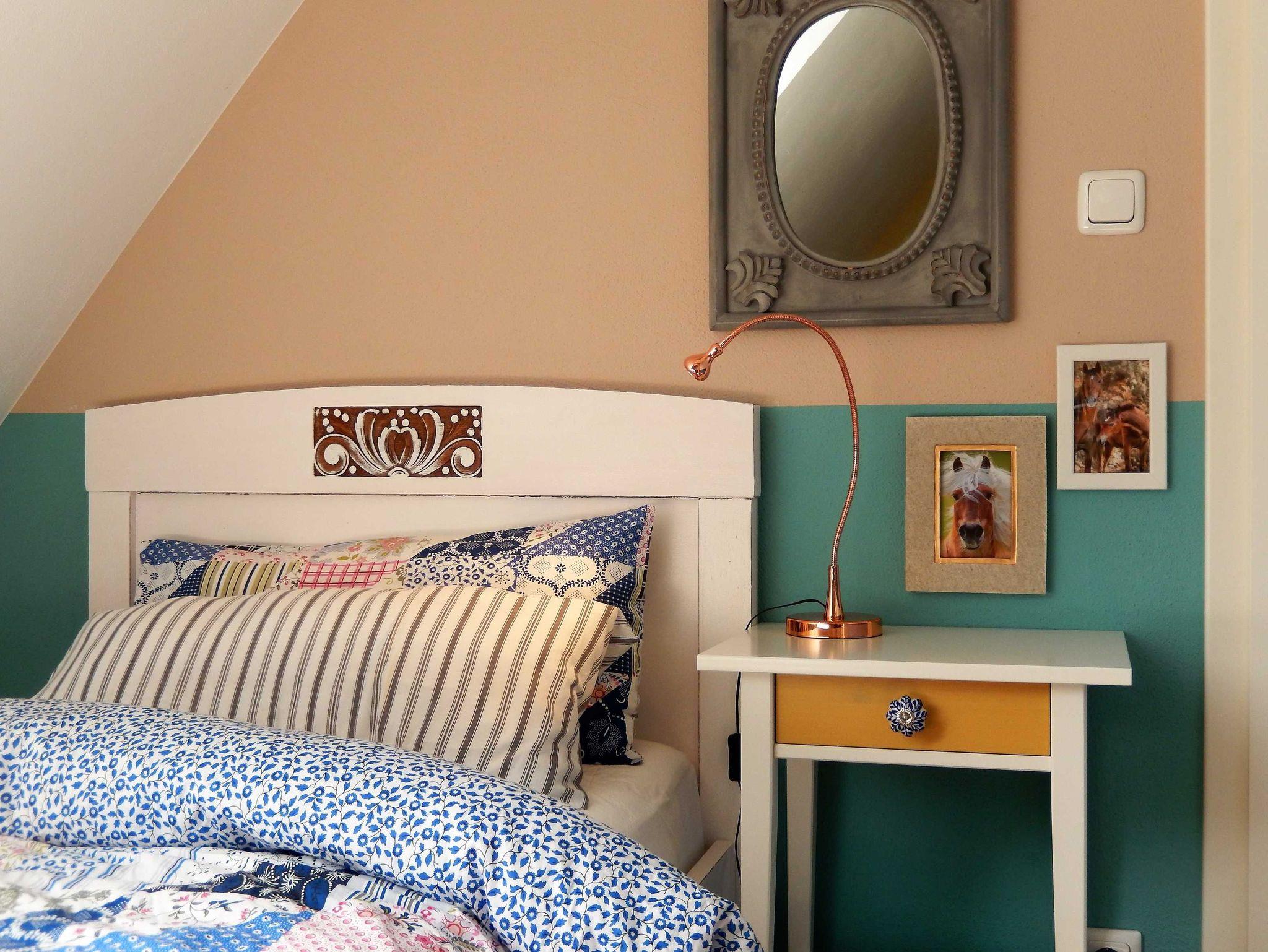Das 1. Schlafzimmer ist ausgestattet mit einem Doppelbett (160 x 200) und einer wundervoll dicken Matratze, jede Bettseite hat einen Nachttisch mit einer Leselampe und davor einen Teppich. Neben dem Kleiderschrank mit Vitrinentüren und Innenbeleuchtung steht eine antike Kommode mit 3 Schubladen. Stilvolle Spiegel, eine nostalgische Glasschale und eine zusätzliche Tischlampe mit gedimmten Licht sorgen für Wohlfühlatmosphäre Die Betten sind mit toller Bettwäsche frisch bezogen.