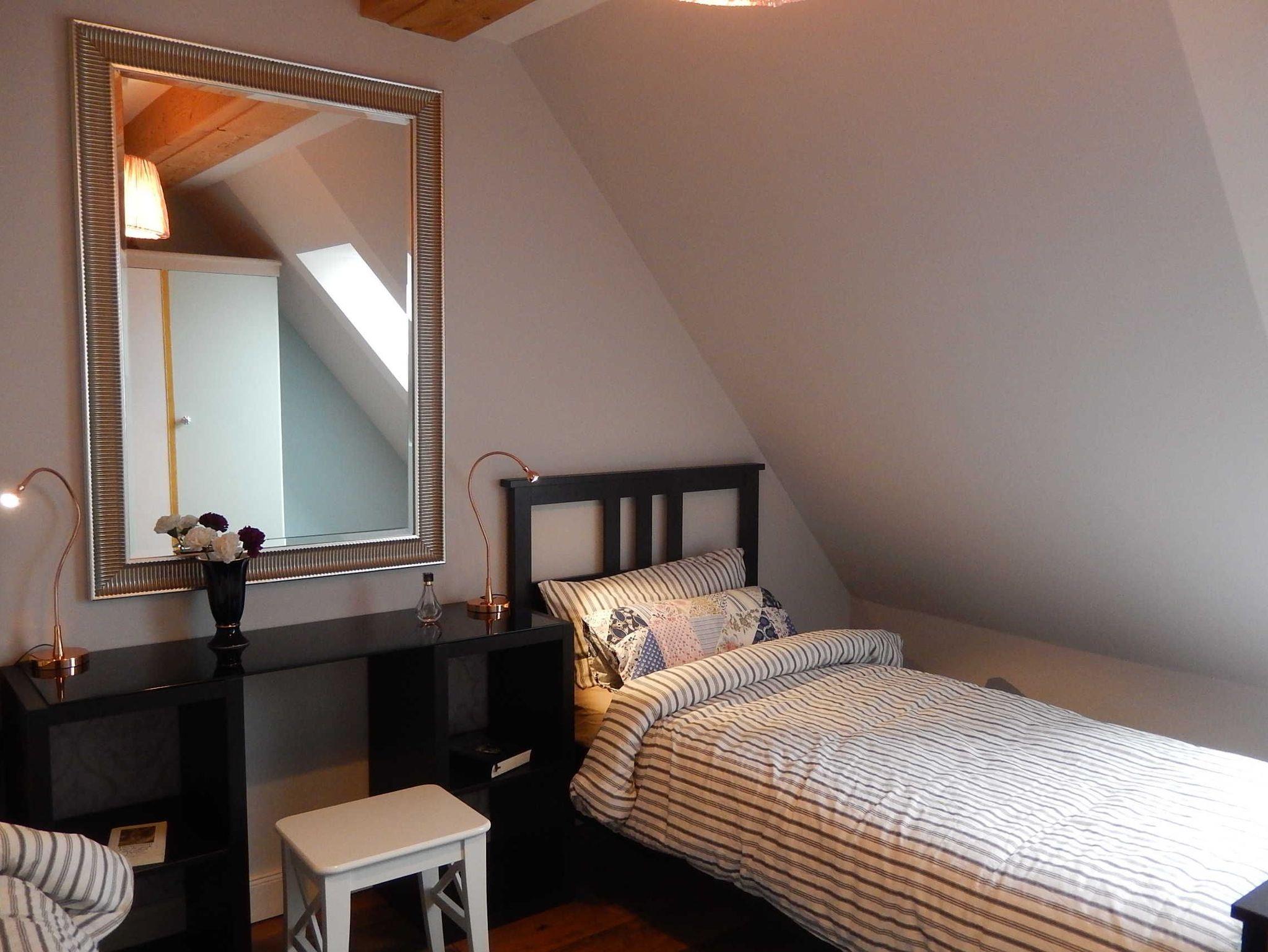 In die 1. Etage führt eine Holztreppe in einen kleinen Flur von dem das Bad und die beiden Schlafzimmer erreicht werden.