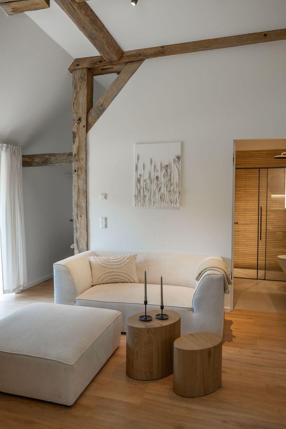 Das 37qm2 große Loft bietet Platz für 2 Personen. Die geschmackvolle Ausstattung umfasst eine Küche mit ECO-Geräten, ein behagliches Boxspringbett und eine Regendusche – abgerundet durch einen hochwertigen Bio-Vinylboden.