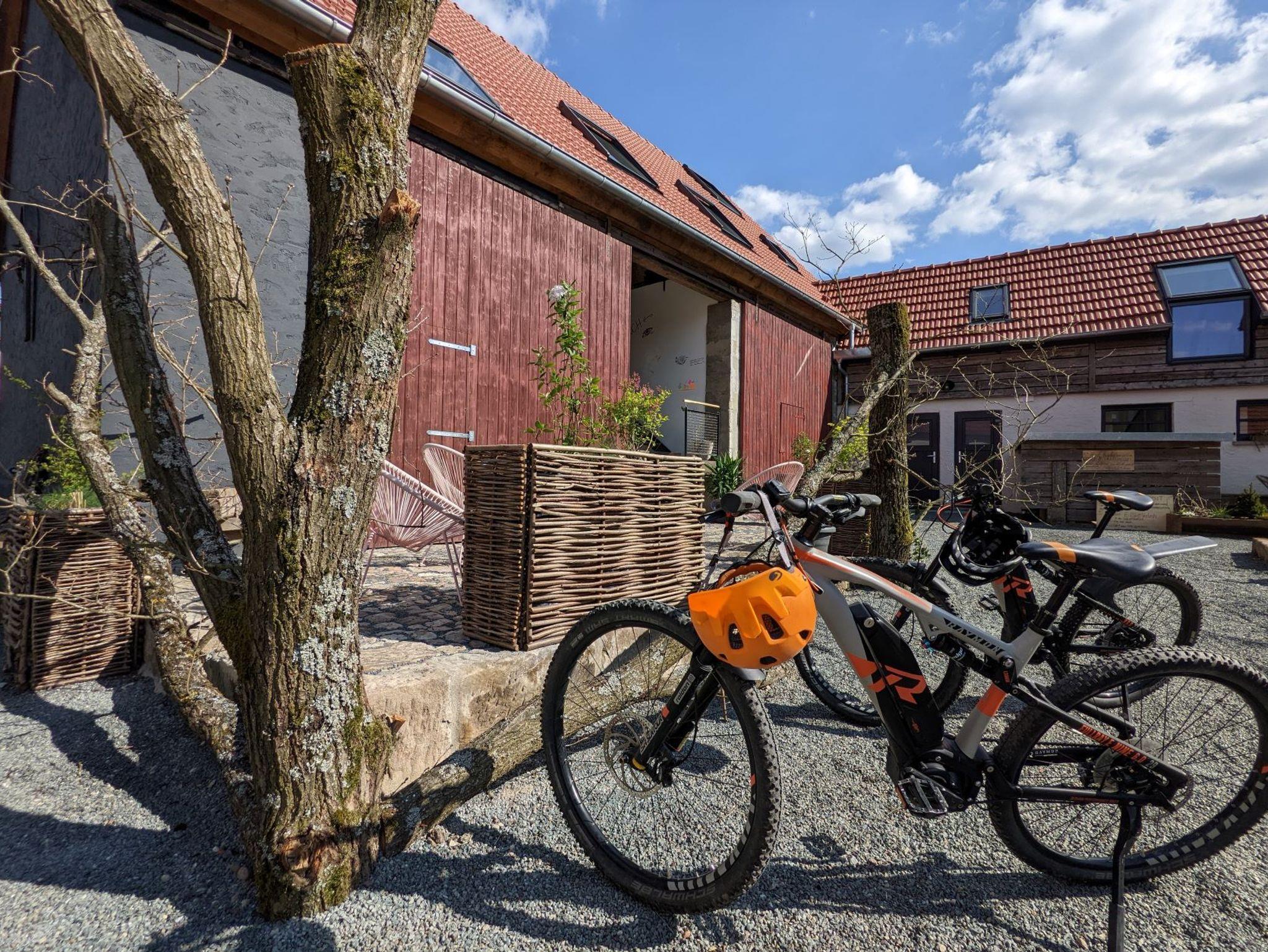 Im Eingangsbereich der Scheune sorgt die 10 Meter hohe Eiche für ein besonderes Ambiente. Am Treppenaufgang der offenen Galerie können Sie sich in unserem riesigen Gästebuch auf der Wand verewigen. Oben angekommen gibt es einen offenen Raum mit vielen Möglichkeiten zum Entspannen oder Lesen. Von da aus geht es auch in die 2 Tiny Häusern von denen eines Ihnen gehört. Im Tiny House gibt es ein Doppelbett für 2 und ein Sofa-Bett für eine weitere Person bzw. 2 Kinder. Zur Ausstattung gehören ein Aufenthaltsraum mit kleiner Kochnische, ein Essbereich und ein TV sowie ein Bad mit Dusche und WC. Über die Raumspartreppe (steile, schmale Treppe) kommen Sie auf Ihr Hochbett mit großartigem Blick in die offene Galerie der Scheune und einem XXL-Fenster direkt über dem Bett für den Sterneblick zum Einschlafen. Vor der Scheune gibt es noch eine große Terrasse für den Ausklang in der Abendsonne. Wir haben alles individuell gestaltet und versucht mit viele kreative Ideen sowohl im Design als auch bei der Ausstattung etwas Besonderes zu schaffen.