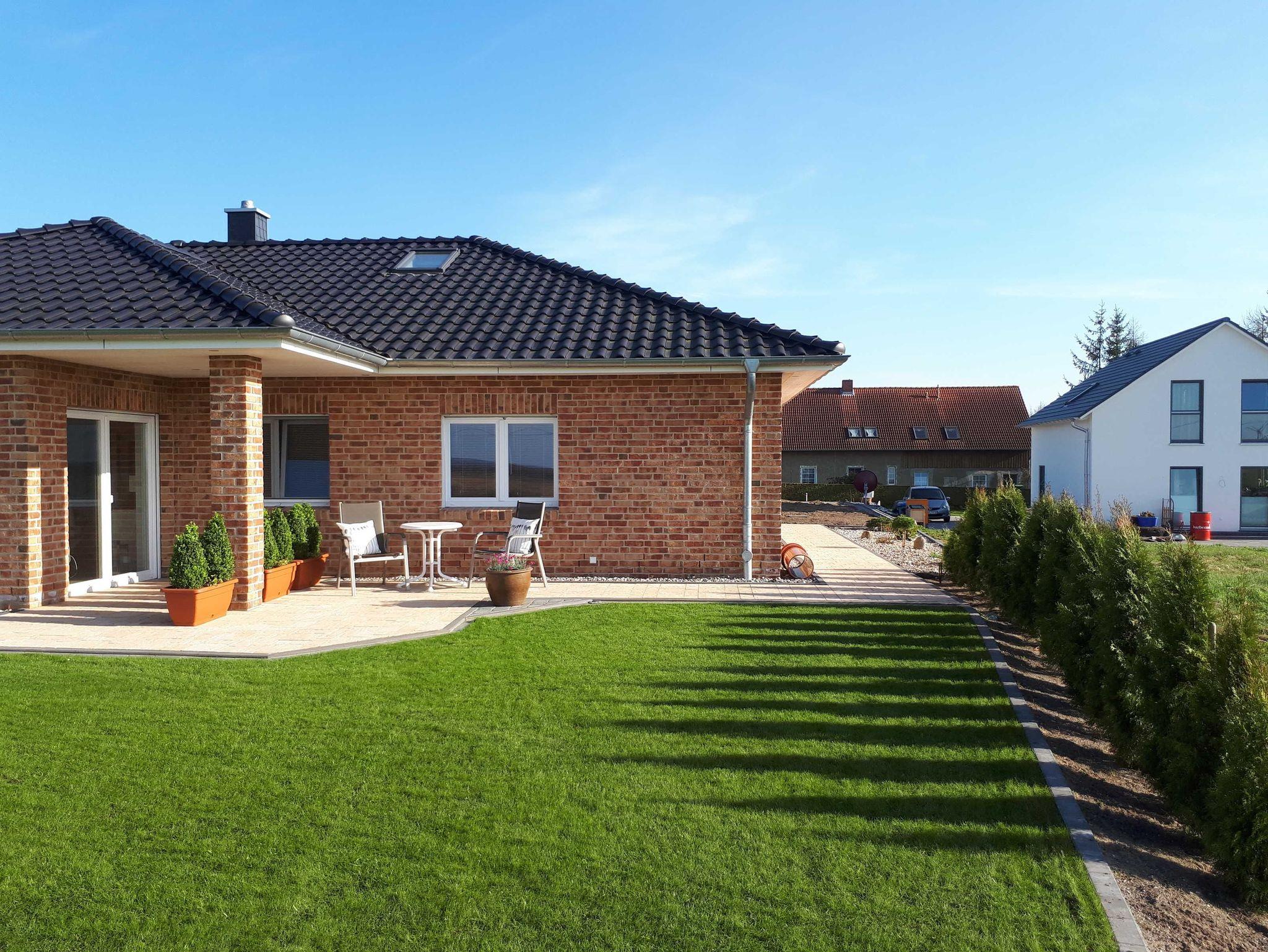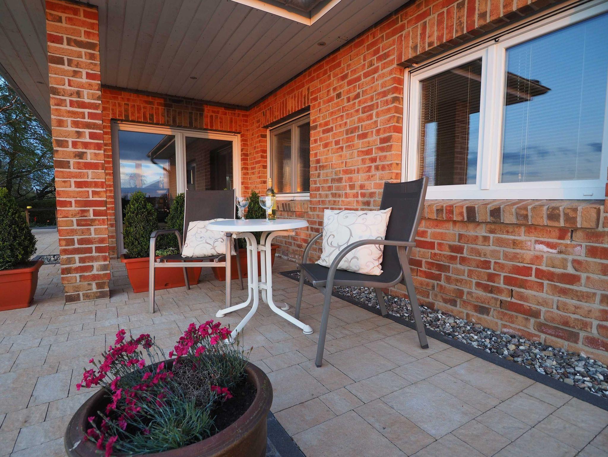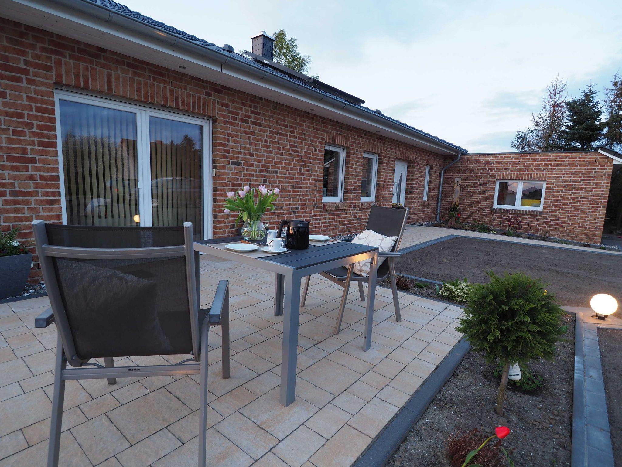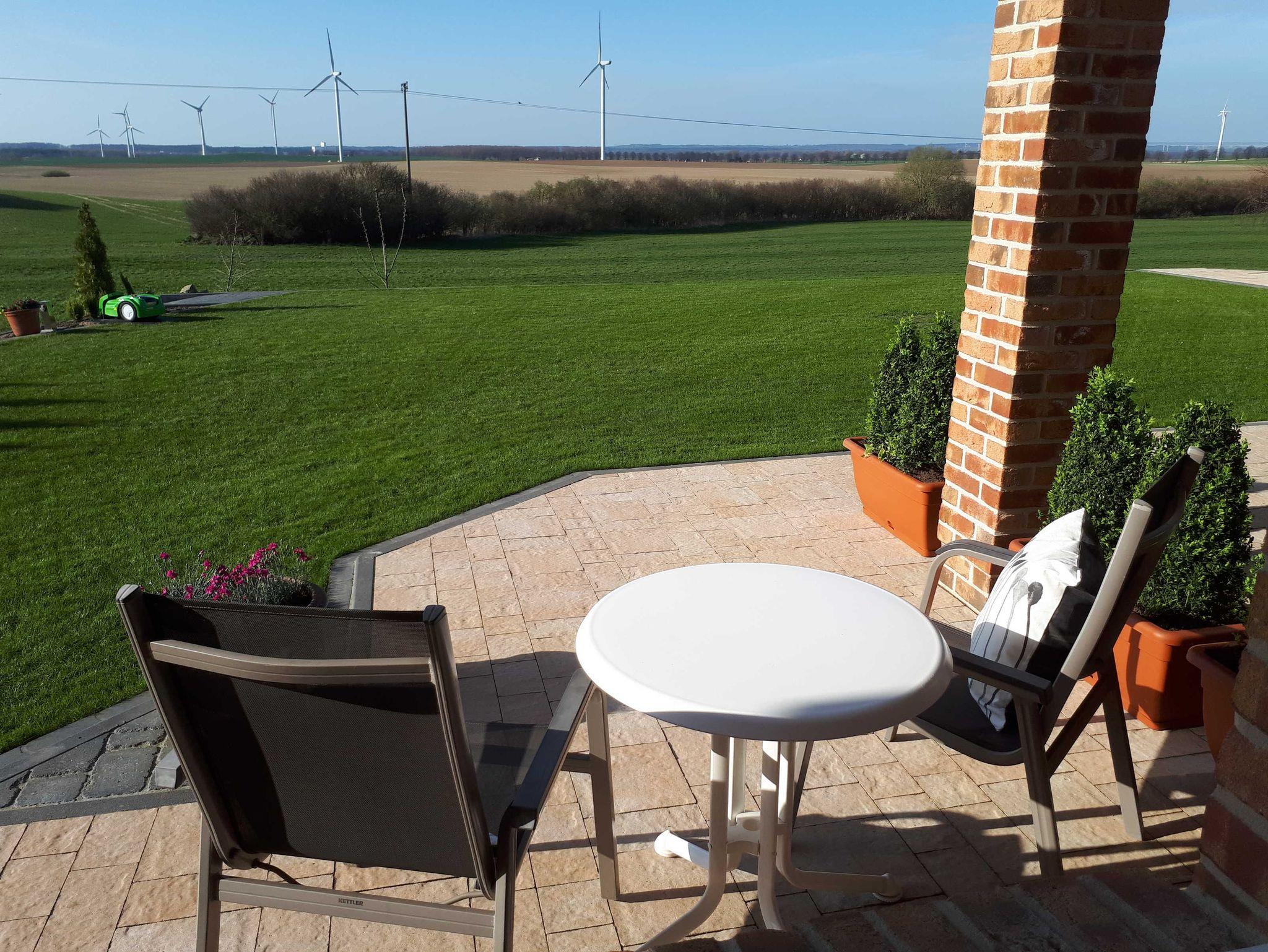 Am Landhaus: Zwei Sonnenterrassen mit Gartenmöbeln. 1 Pkw-Stellplatz.