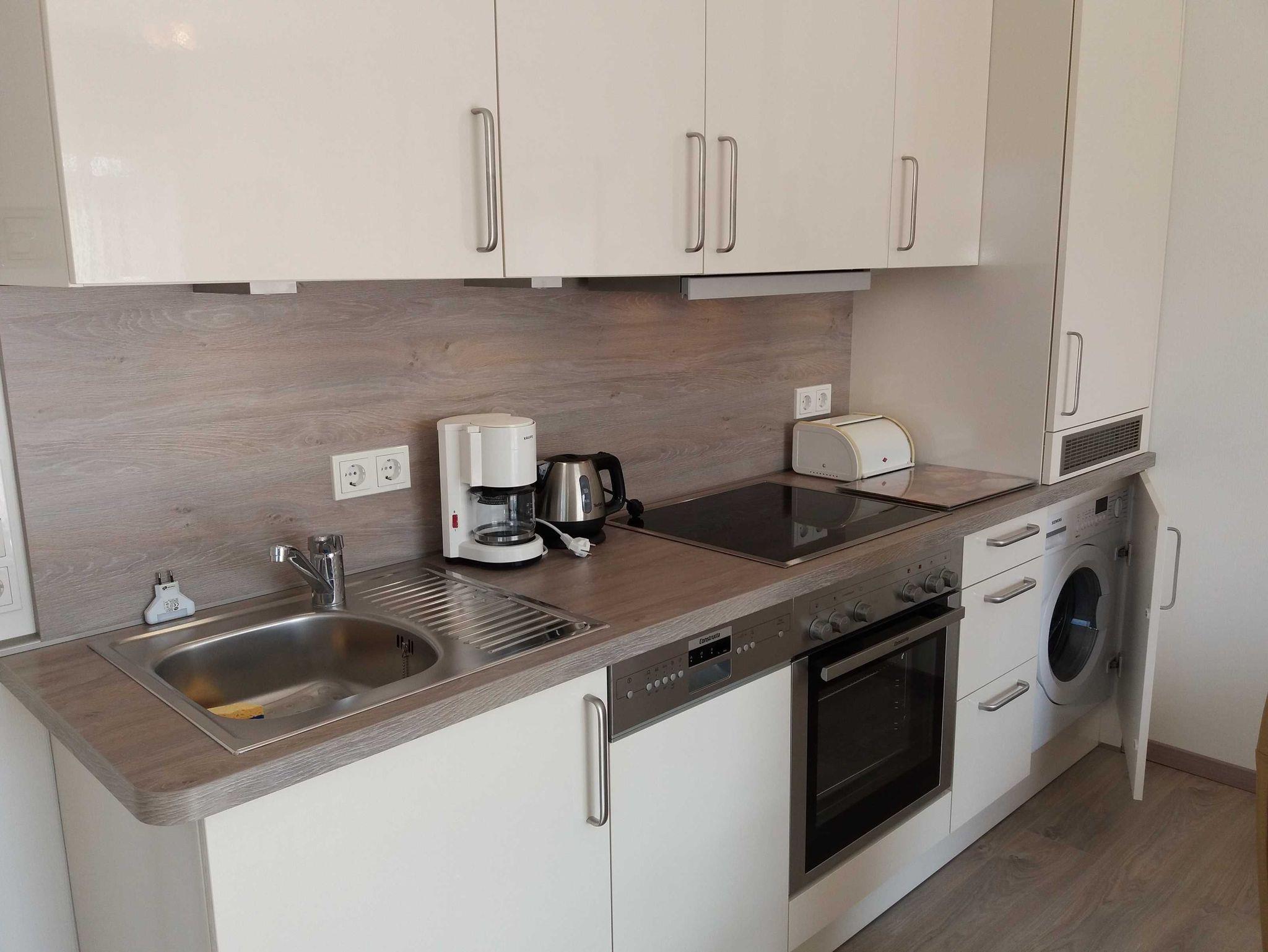 • Voll ausgestattete Küchenzeile und Esstisch