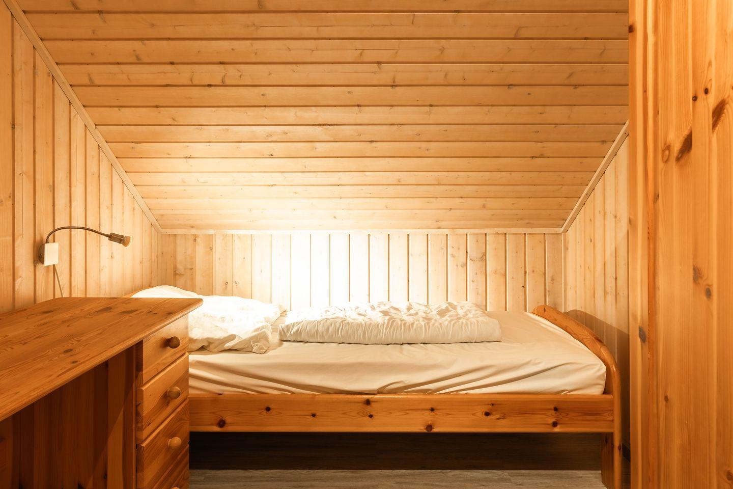 Das Ferienhaus im skandinavischen Stil bietet Platz für bis zu 6 Personen auf 2 Etagen mit 2 Schlafzimmern und offener Schlafgalerie, Wohn-/Essbereich, Einbauküche, Badezimmer mit Sauna und Whirlpool, Pkw-Stellplatz und Terrasse.