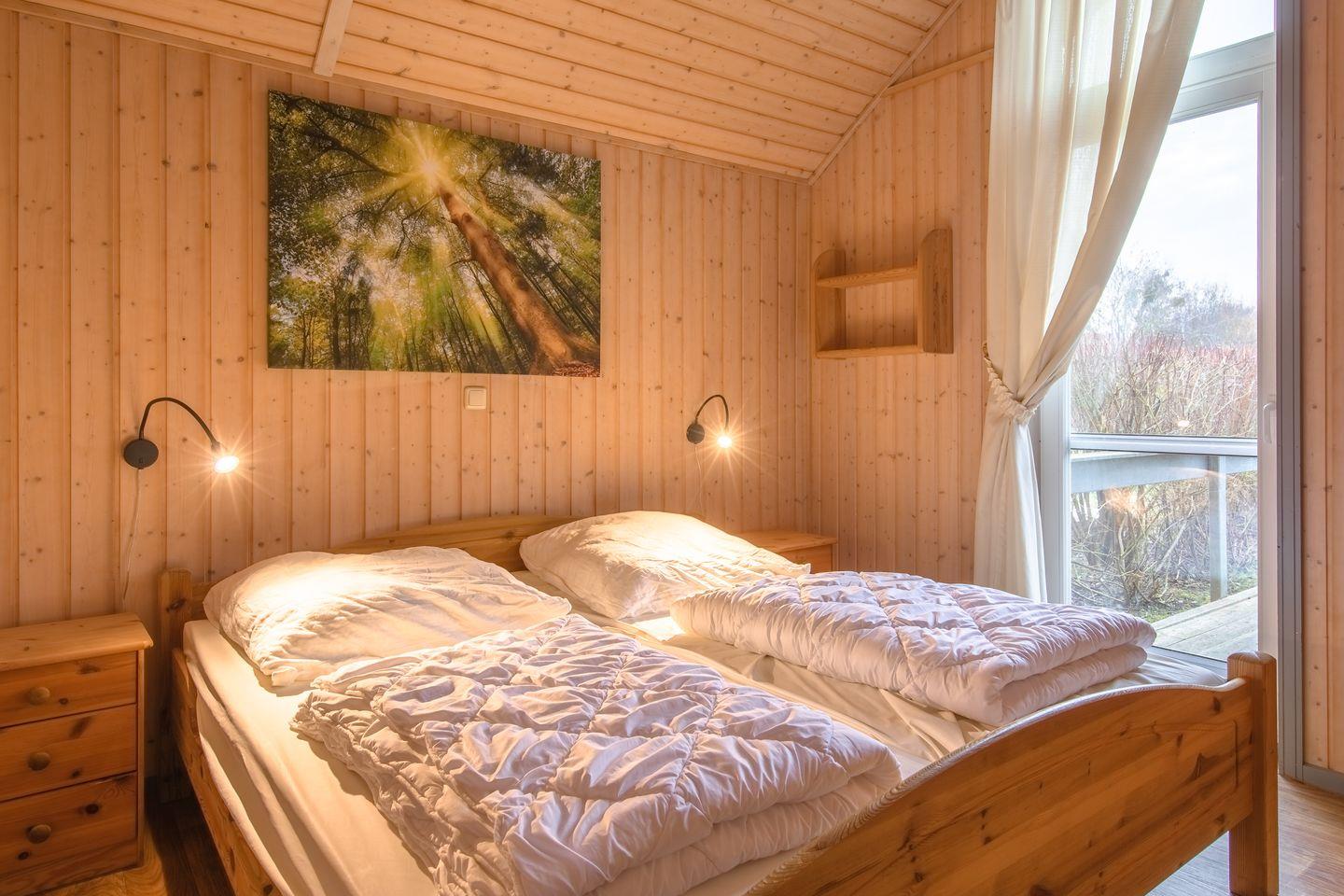 Das Ferienhaus im skandinavischen Stil bietet Platz für bis zu 6 Personen auf 2 Etagen mit 2 Schlafzimmern und offener Schlafgalerie, Wohn-/Essbereich, Einbauküche, Badezimmer mit Sauna und Whirlpool, Pkw-Stellplatz und Terrasse.