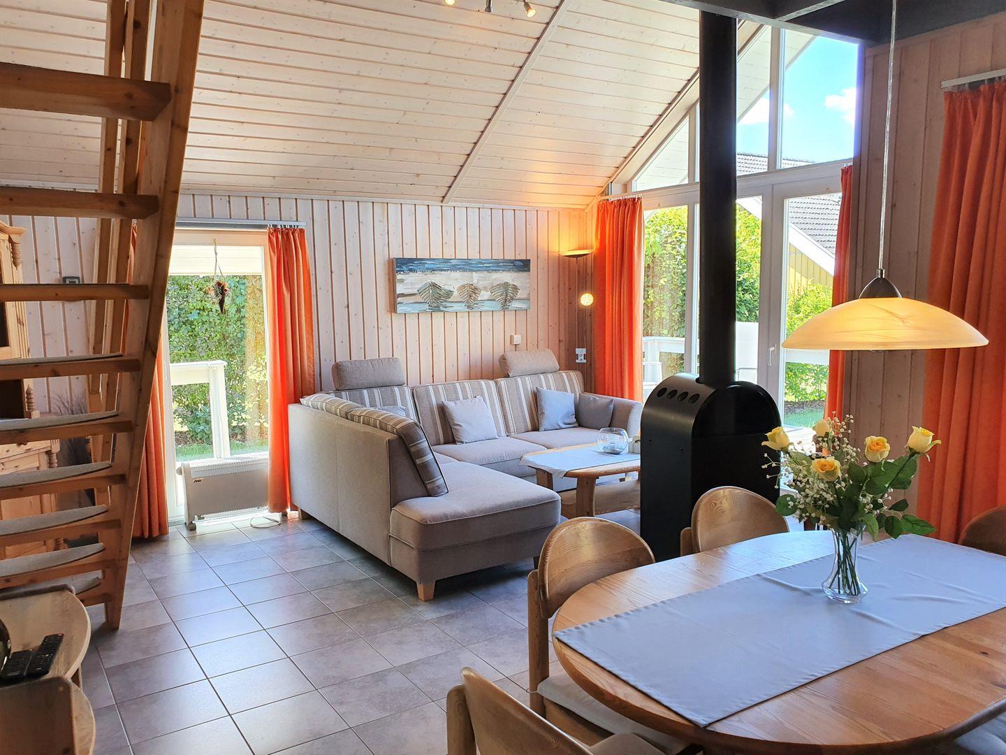 Das Ferienhaus im skandinavischen Stil bietet Platz für bis zu 6 Personen auf 2 Etagen Platz mit 2 Schlafzimmern und offener Schlafgalerie, großen Wohn-/Essbereich, Einbauküche, Sauna und Whirlpool und Pkw-Stellplatz, Terrasse. Energiekosten werden nach Verbrauch abgerechnet.