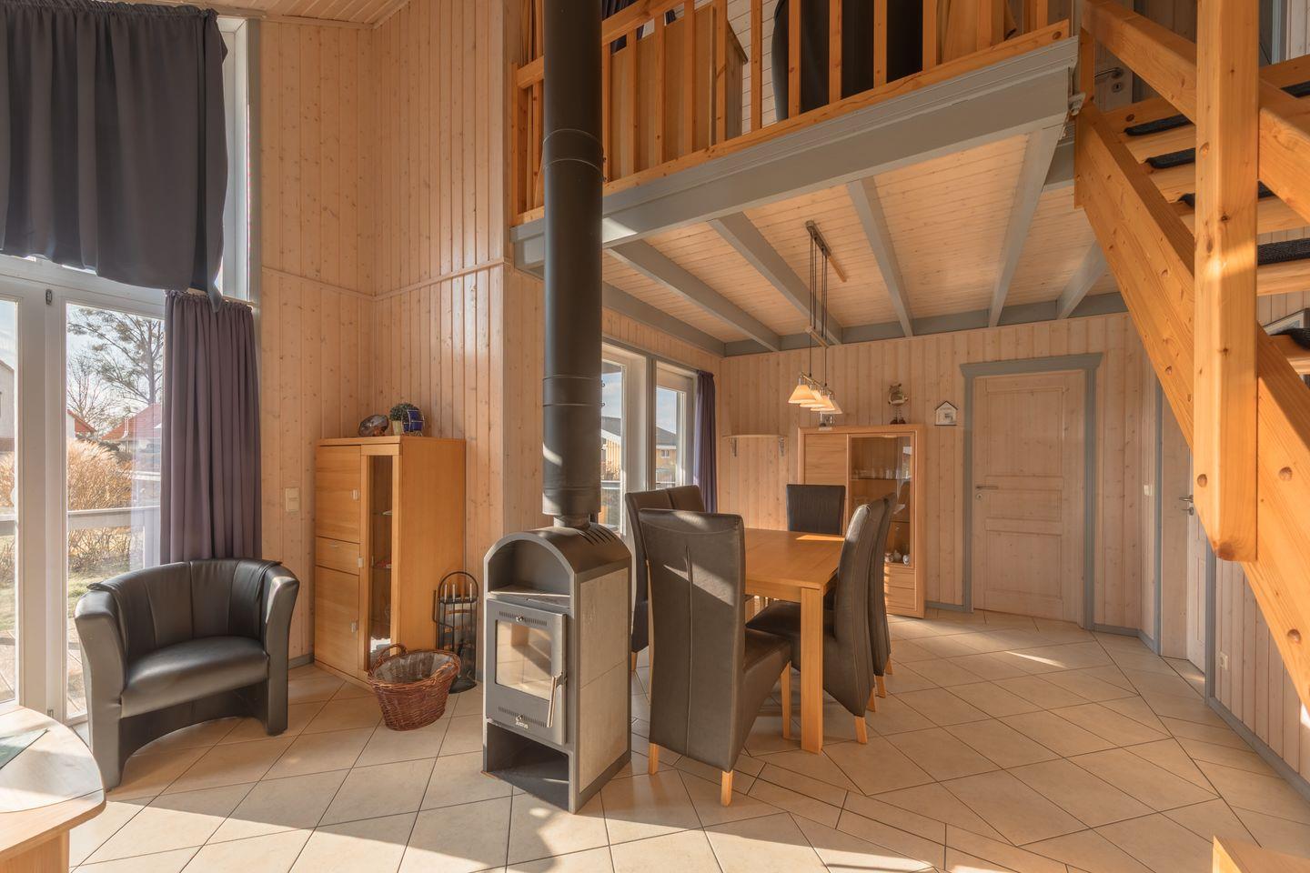 Das Ferienhaus im skandinavischen Stil bietet Platz für bis zu 6 Personen auf 2 Etagen Platz mit 2 Schlafzimmern und offener Schlafgalerie, großen Wohn-/Essbereich, Einbauküche, Sauna und Whirlpool und Pkw-Stellplatz, Terrasse. Energiekosten werden nach Verbrauch abgerechnet.