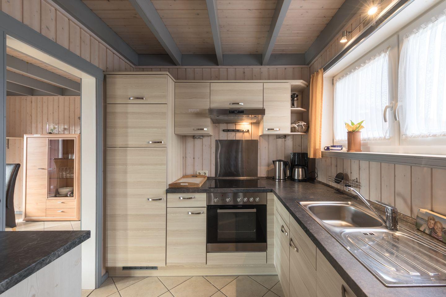 Das Ferienhaus im skandinavischen Stil bietet Platz für bis zu 6 Personen auf 2 Etagen mit 2 Schlafzimmern und offener Schlafgalerie, Wohn-/Essbereich, Einbauküche, Badezimmer mit Sauna und Whirlpool, Pkw-Stellplatz und Terrasse.